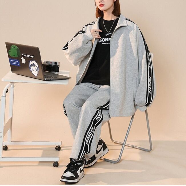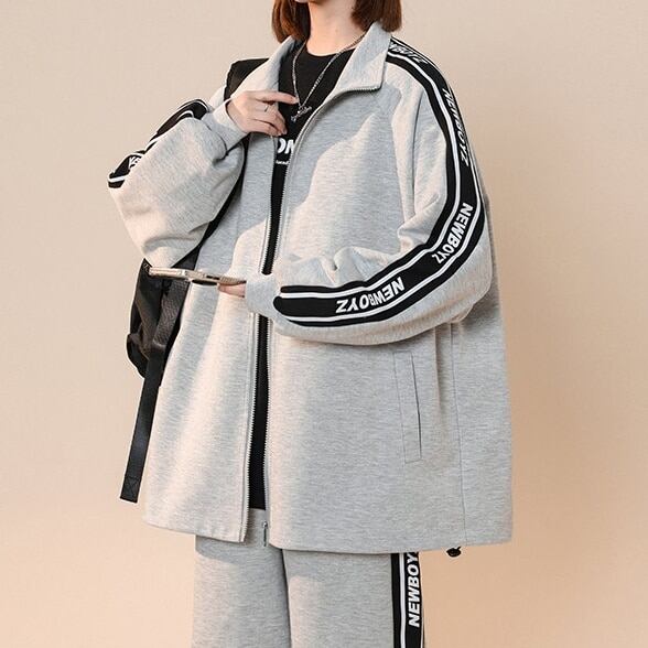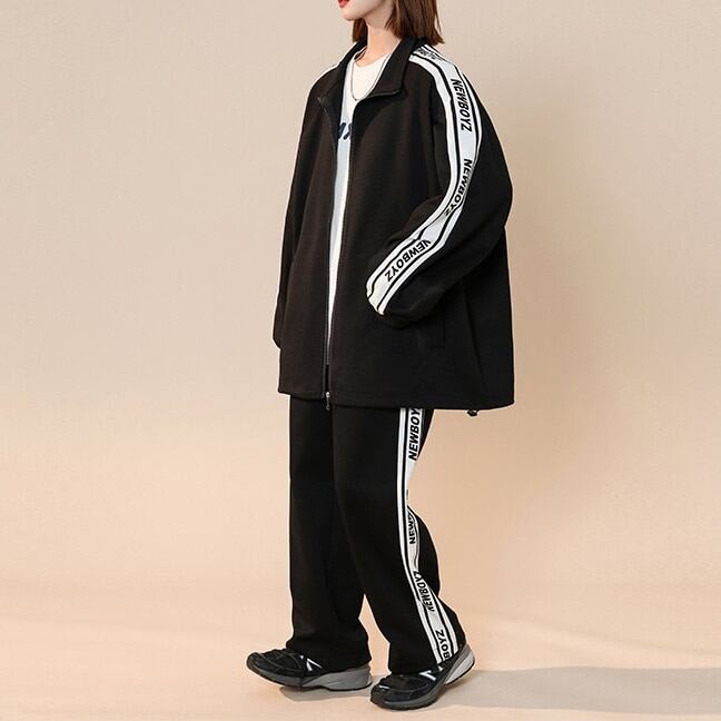 ジャージ セットアップ レディース 韓国 ビッグシルエット ロゴ テープ ラインジャージ 上下セット