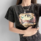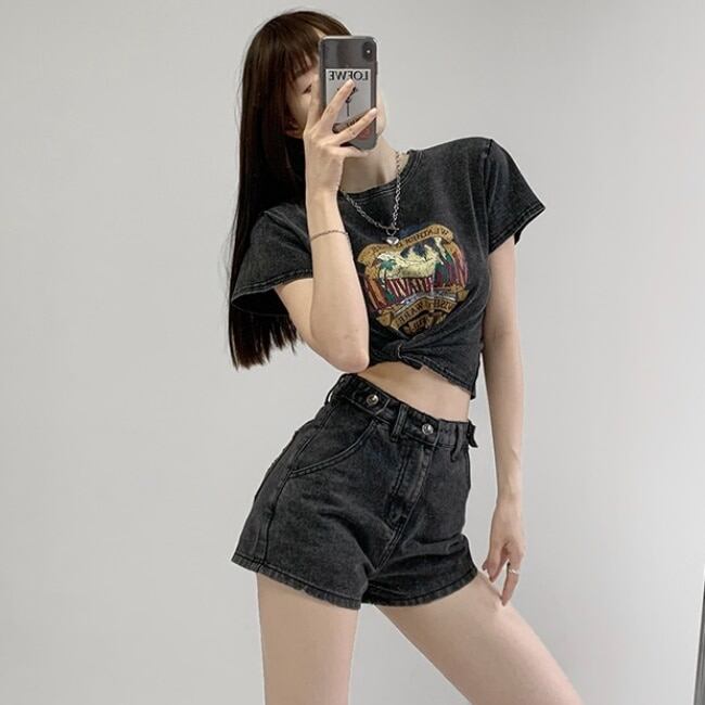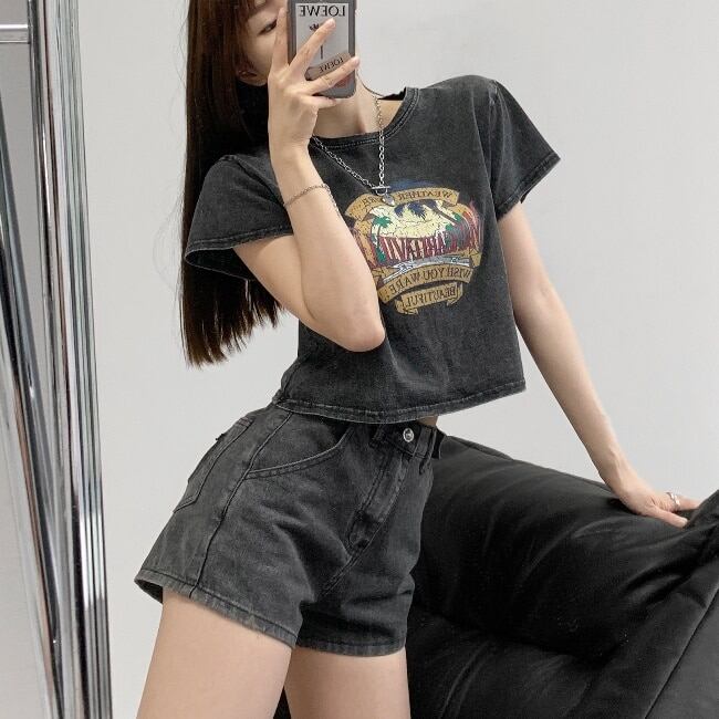 プリント Tシャツ レディース 韓国 ファッション マイクロ トップス 夏 ショート丈 T トップス