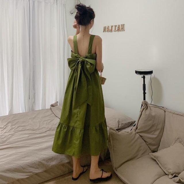 後ろリボン ワンピース ノースリーブ レディース 韓国ファッション 背中見せ フレア 夏 ワンピース サマードレス
