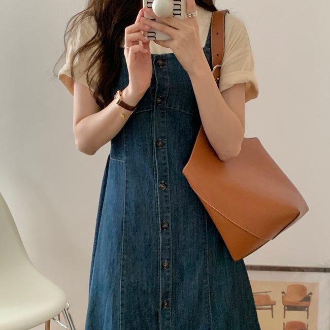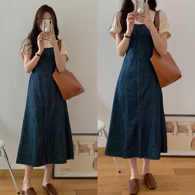 デニム ジャンパースカート レディース 韓国 ファッション 夏 ノースリーブワンピース キャミワンピ Aライン フレア ナチュラル シンプル