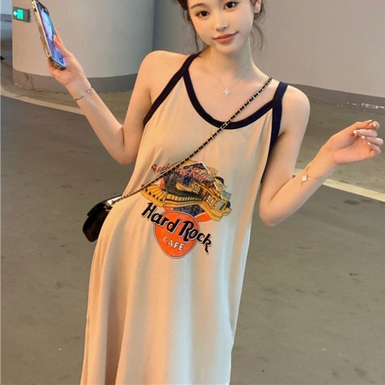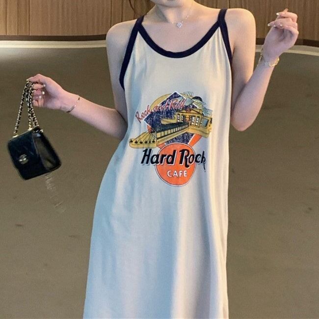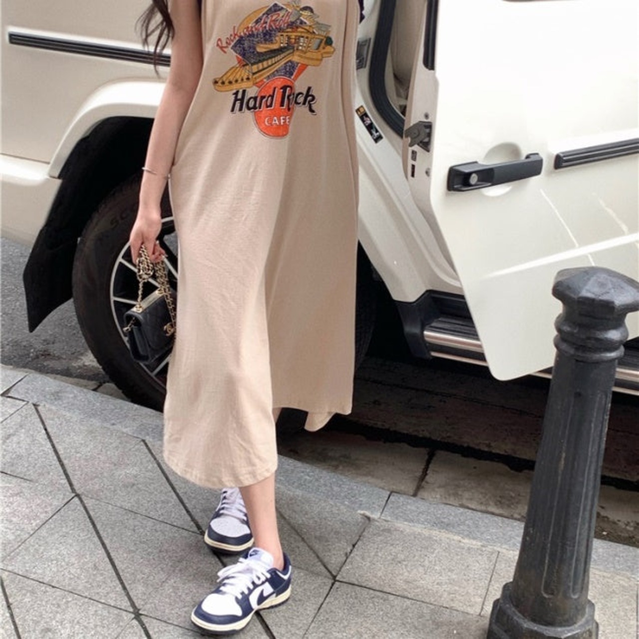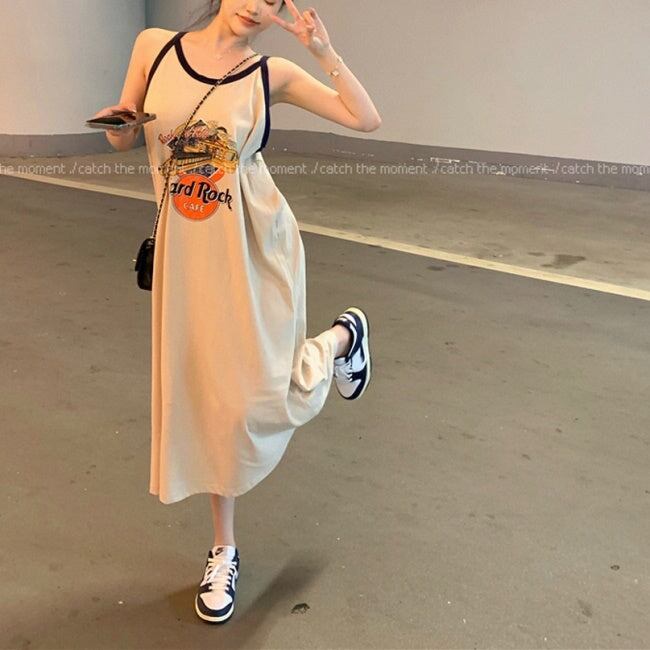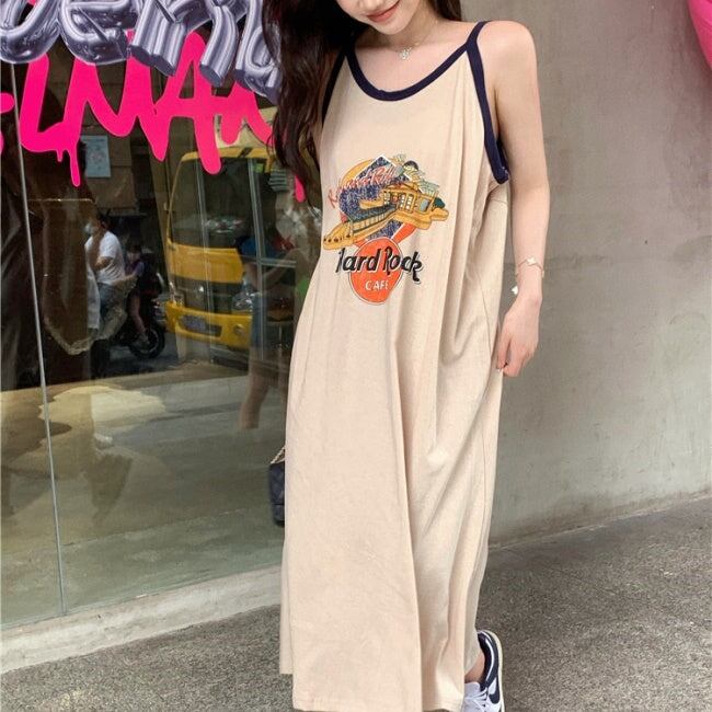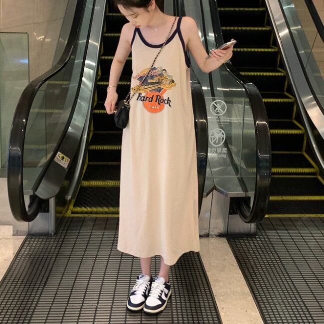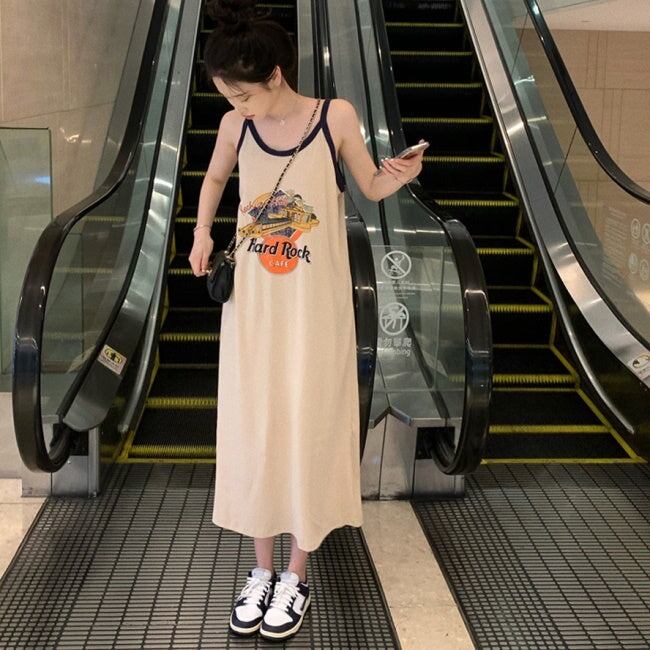 キャミワンピース レディース 韓国 ファッション アメカジ ロゴ ノースリーブ ワンピース