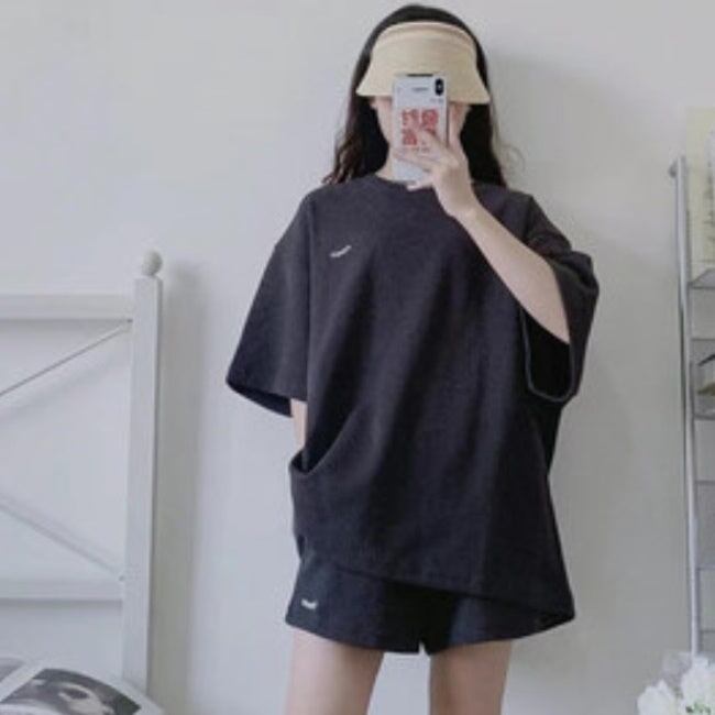 セットアップ レディース 夏 Tシャツ ハーフパンツ 上下セット 韓国 ファッション ロゴ ワンポイント