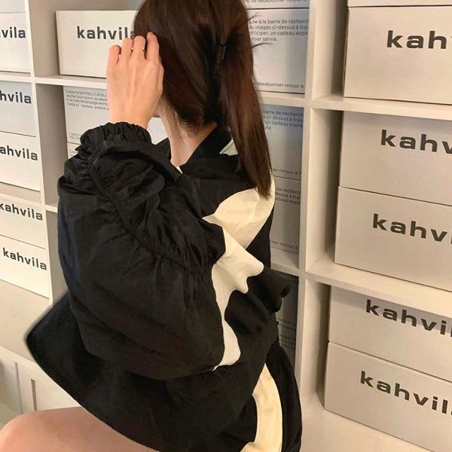 ボリュームスリーブの薄手ブルゾンとトラックパンツのセット