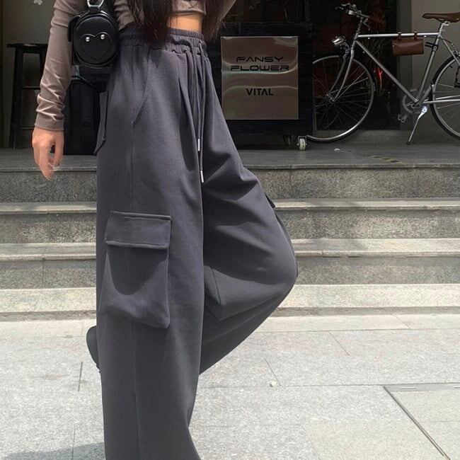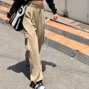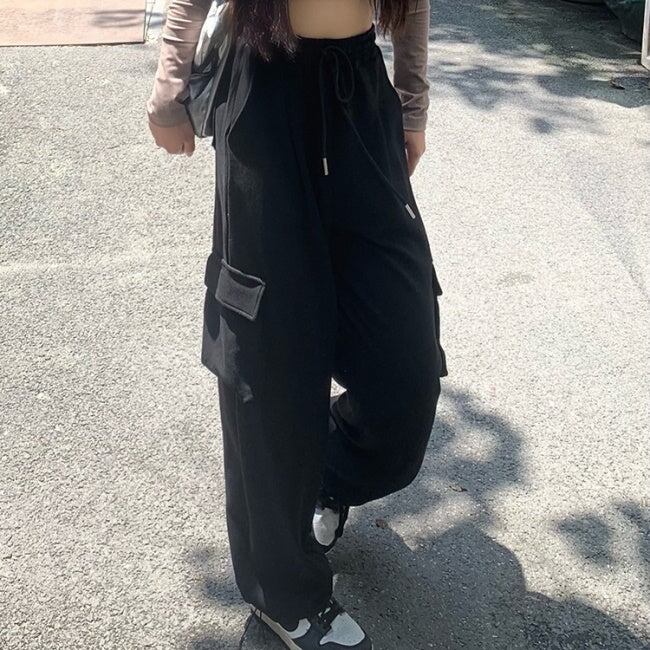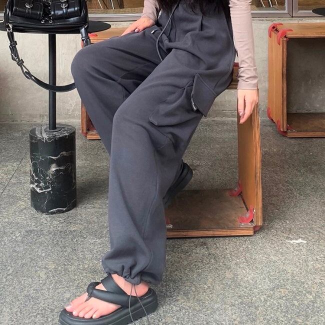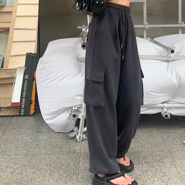 ワイド カーゴパンツ レディース 韓国 オールシーズン イージー ワイドパンツ サイドポケット