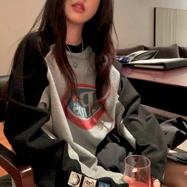 トレーナー 長袖 レディース 韓国 ファッション ロゴ バイカラー プリントロゴ 春秋 ラグラン Tシャツ ロンT