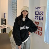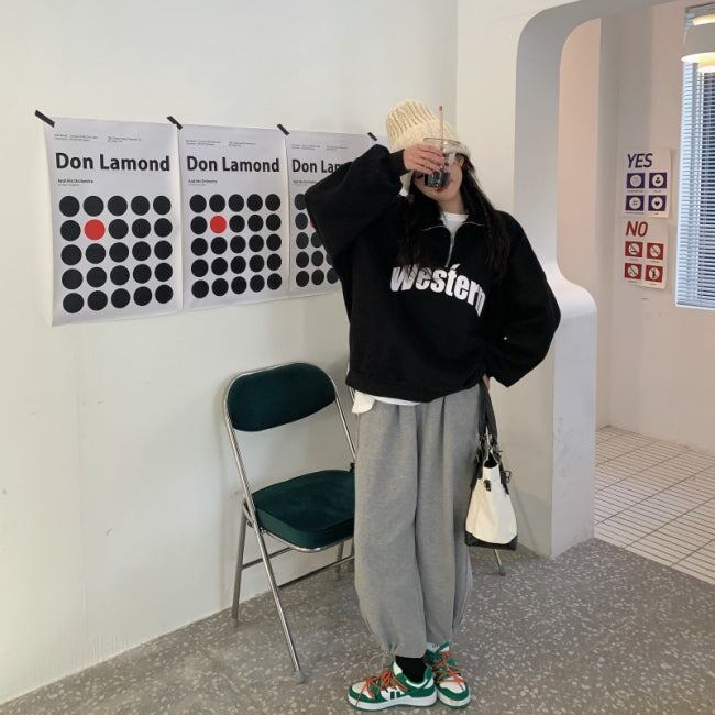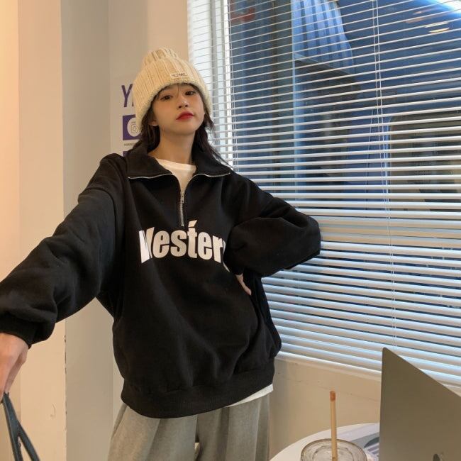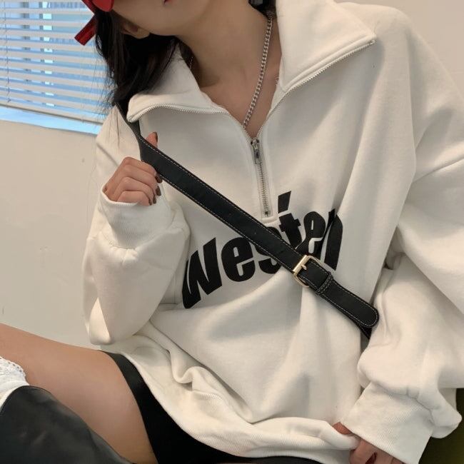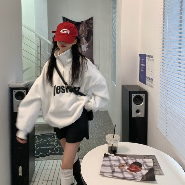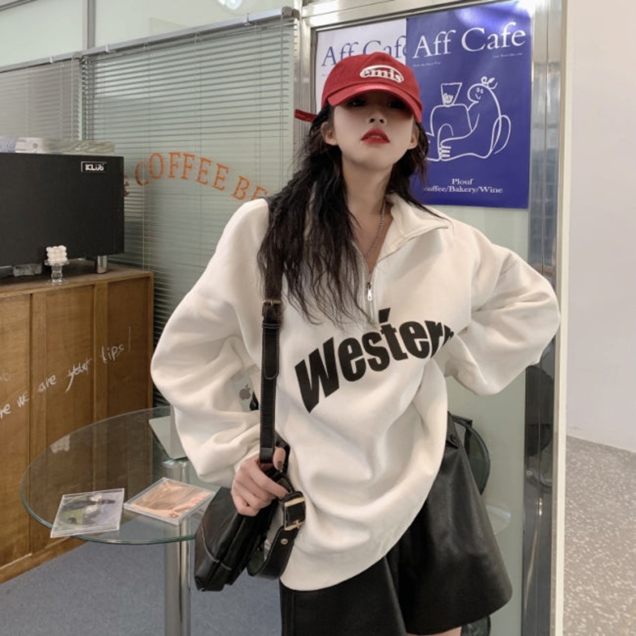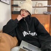 ハーフジップトレーナー レディース 韓国 ファッション 秋冬 ロゴ トップス シンプル スポーツミックス 長袖 ハイネック 2way