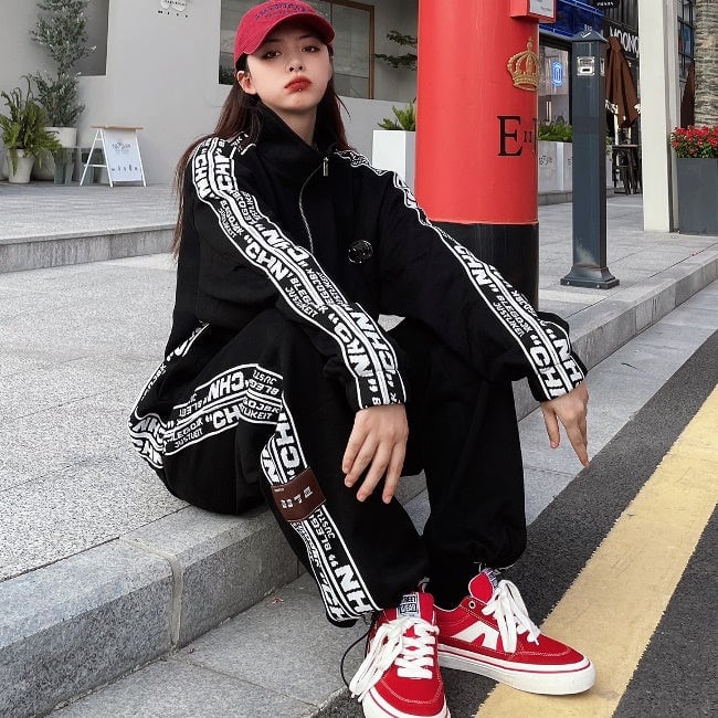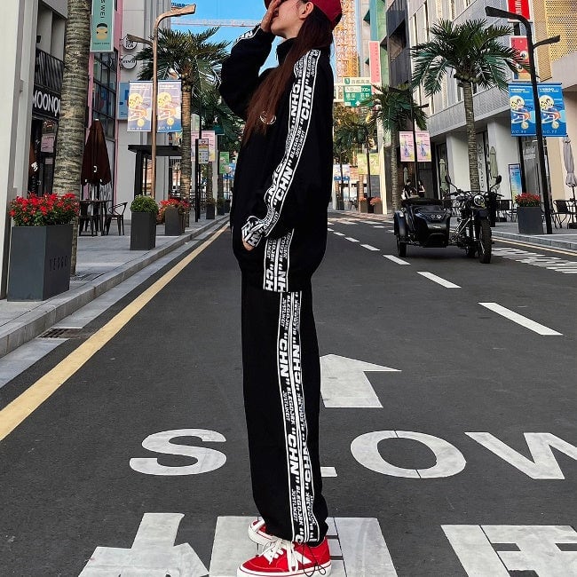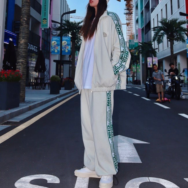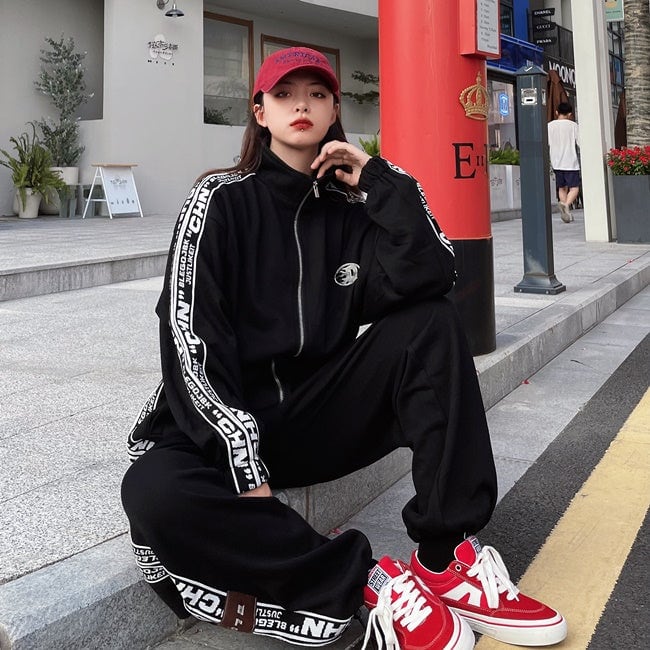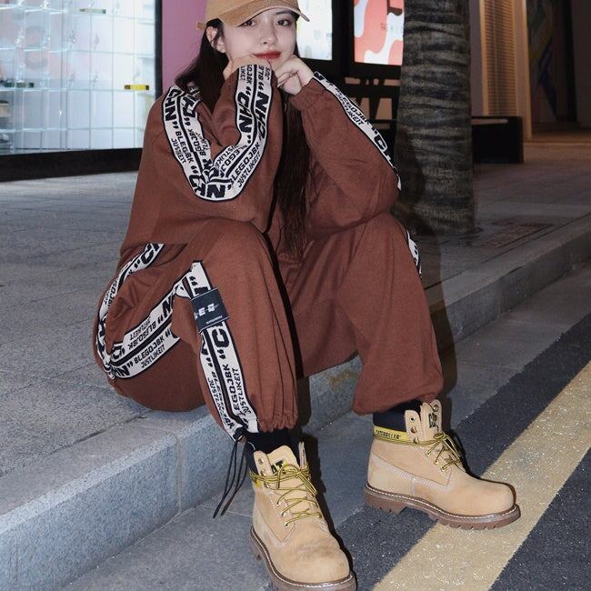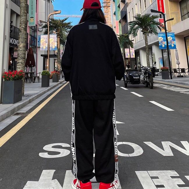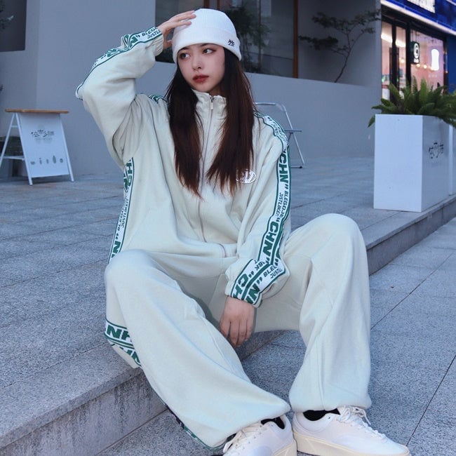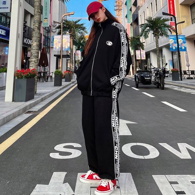 ロゴ ライン ジャージ セットアップ レディース 韓国 ファッション 秋冬 ストリート スポーツウェア 上下セット オーバーサイズ ジャージ