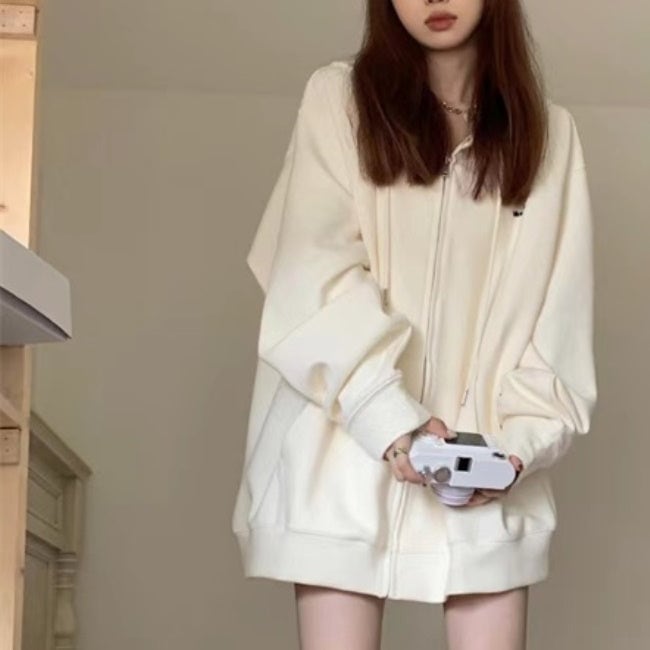 バックロゴ パーカー レディース 韓国 ファッション ビッグシルエット ジップアップ パーカー 秋冬 トップス
