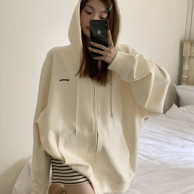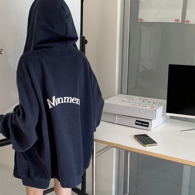 ジップパーカー レディース 韓国 ファッション オーバーサイズ ビッグシルエット ロゴ パーカー バックロゴ おしゃれ
