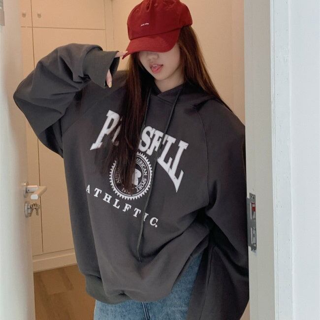 スウェット パーカー レディース 韓国 ファッション プルオーバー ロゴプリント ビッグシルエット オーバーサイズ
