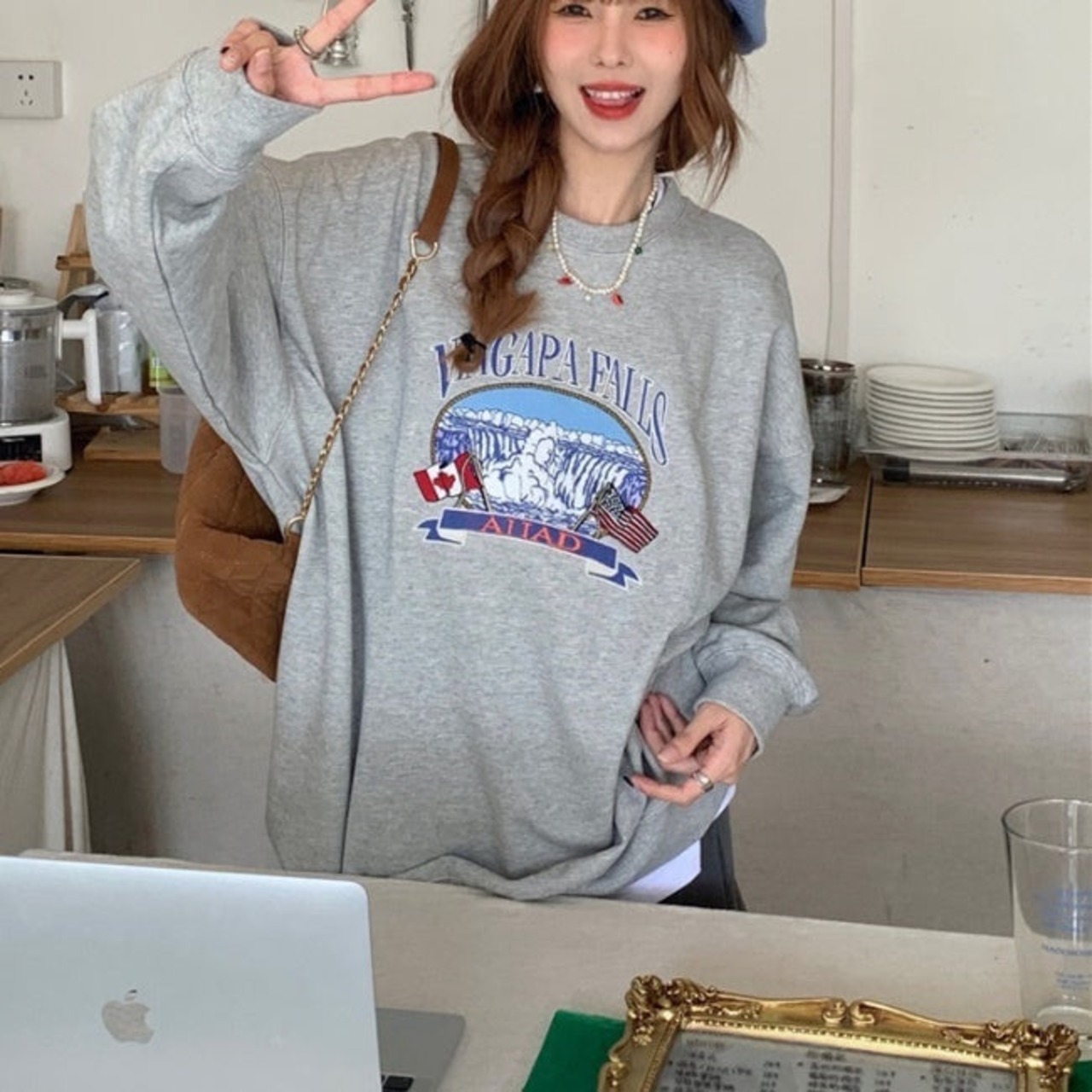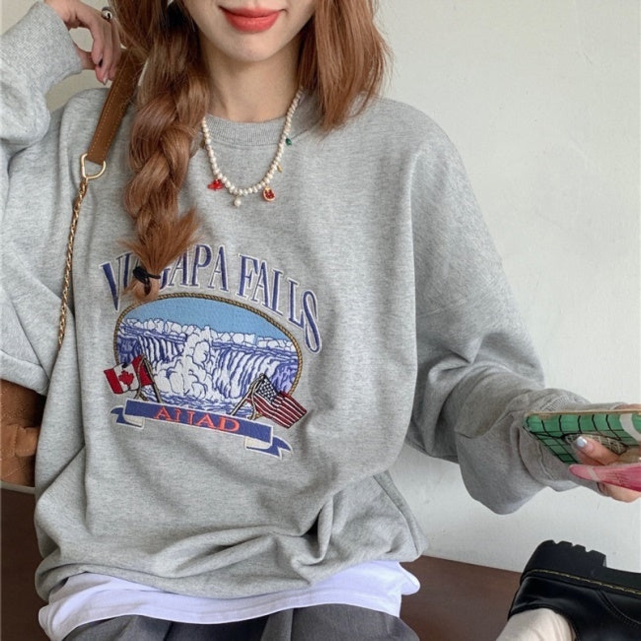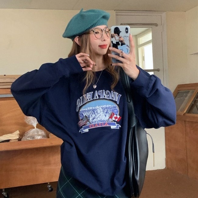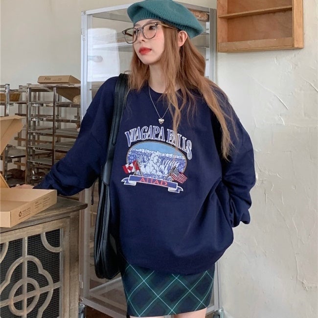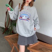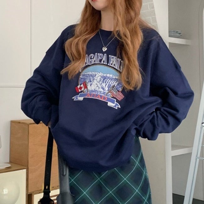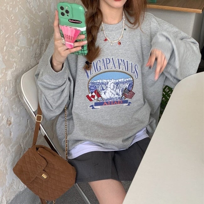 プリント オーバー スウェット トレーナー レディース 韓国 ファッション 秋冬 ビッグシルエット トップス