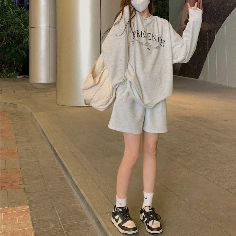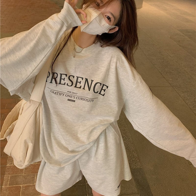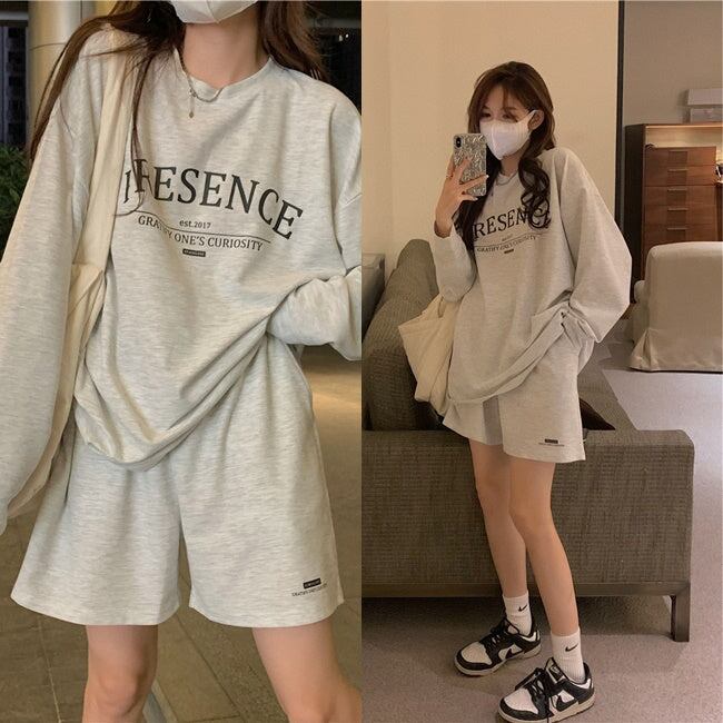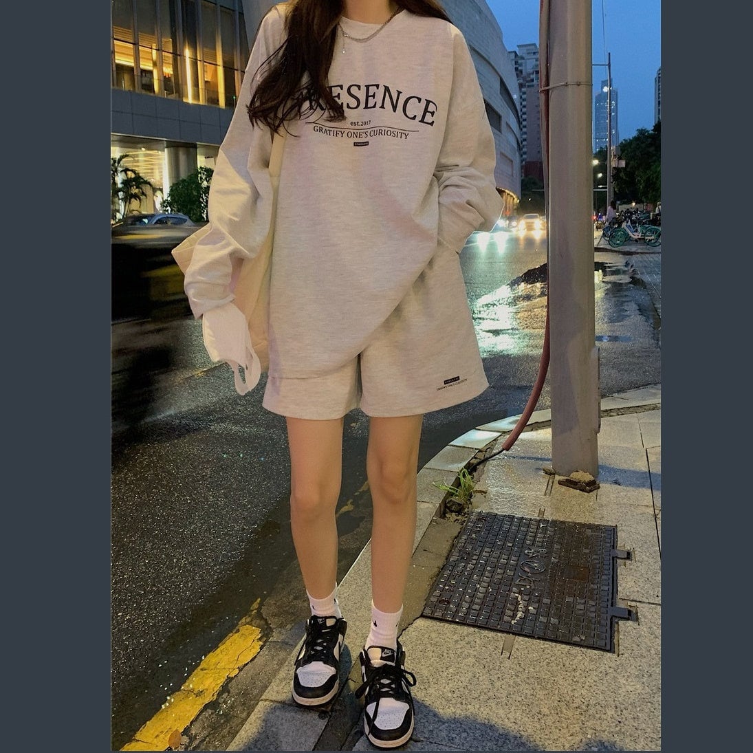 セットアップ 長袖 ショートパンツ レディース 韓国 ファッション ロゴ リラックス ラウンジ ストリート ハーフパンツ 2点セット上下