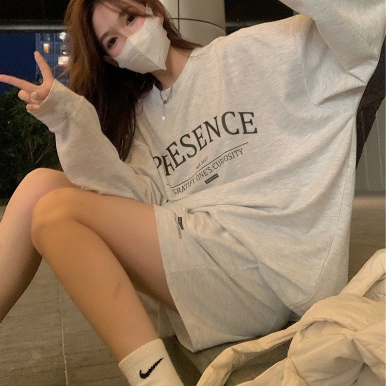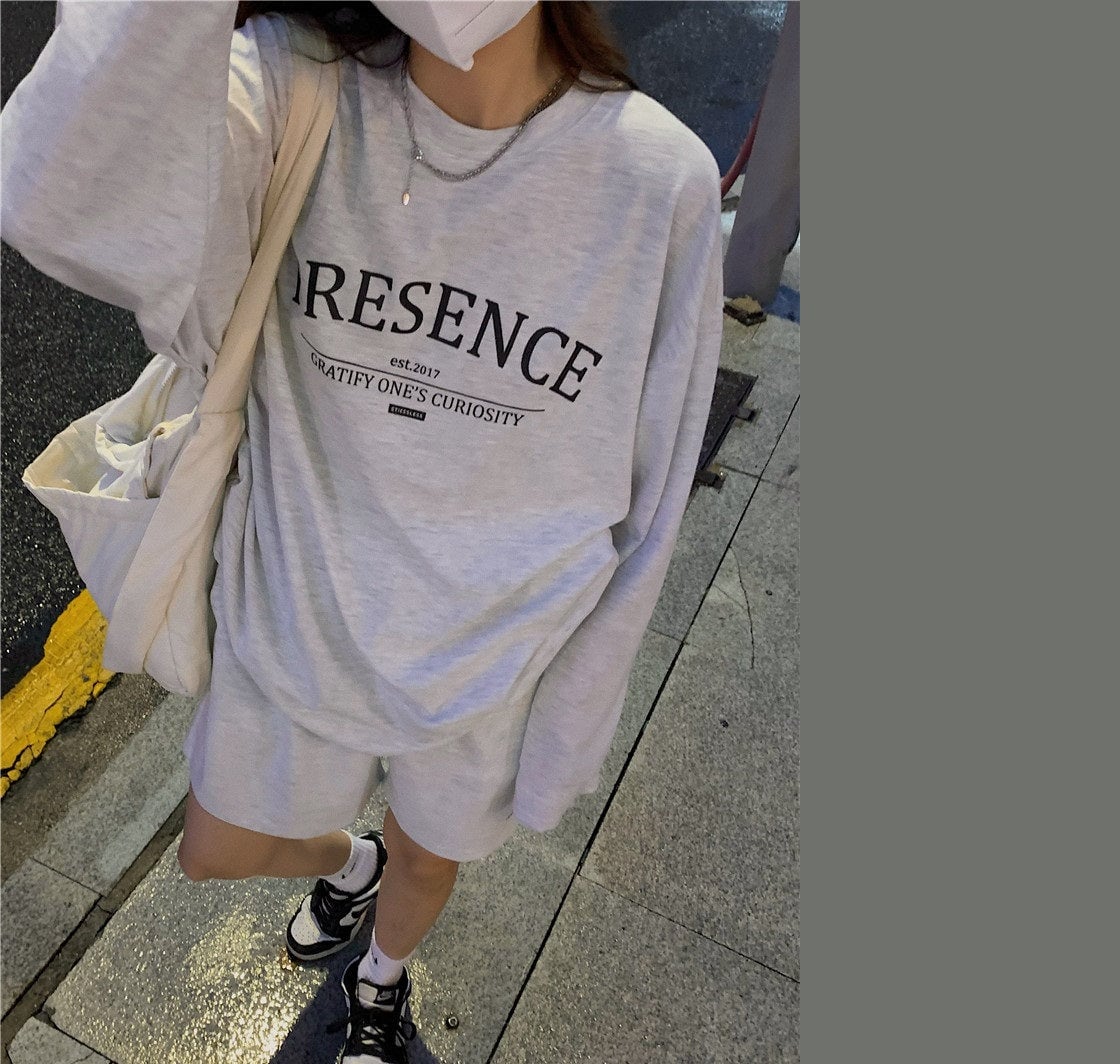 セットアップ レディース 韓国 ファッション 秋 ロゴ リラックス ロンT ショートパンツ 上下セット