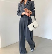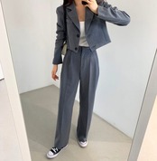 セットアップ レディース 韓国 スーツ ショートジャケット ワイドパンツ カジュアルスーツ 上下セット