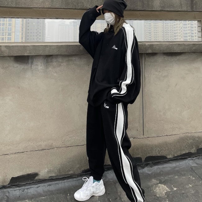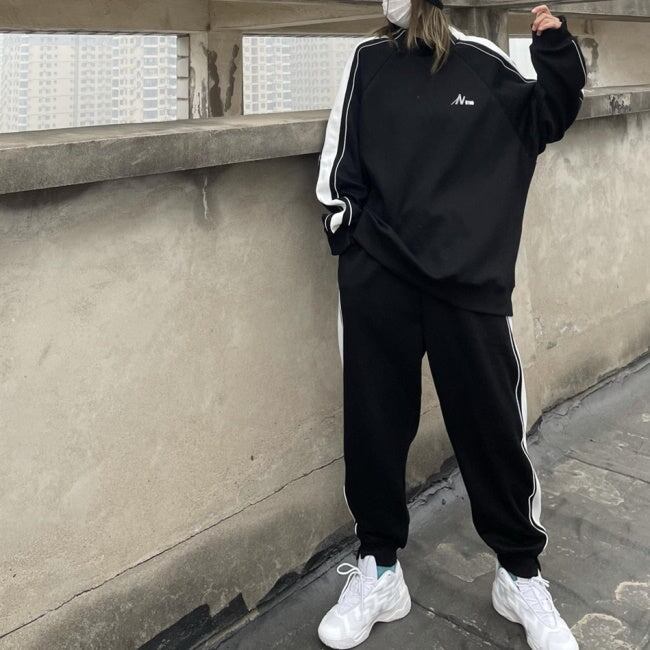 ジャージ セットアップ レディース 韓国 ファッション ロゴ ライン ジャージ ストリート オーバーサイズ スポーツウェア