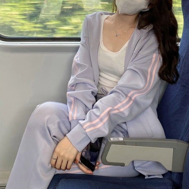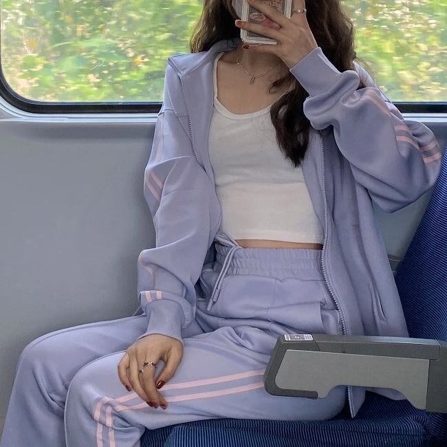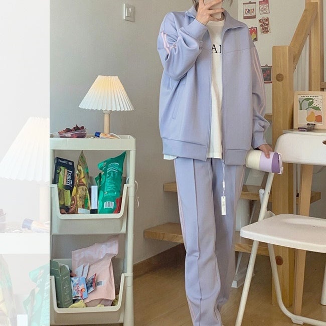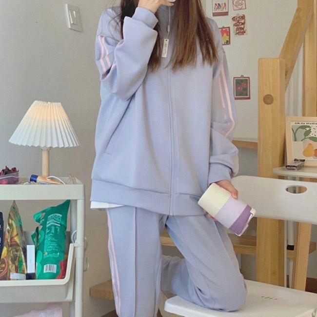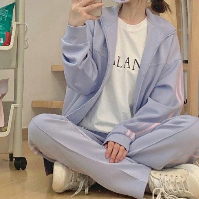 ニュアンスカラー ジャージ セットアップ レディース 韓国 カジュアル スポーツウェア ラインジャージ 上下セット