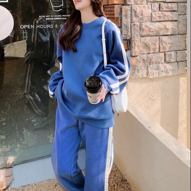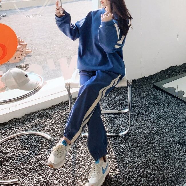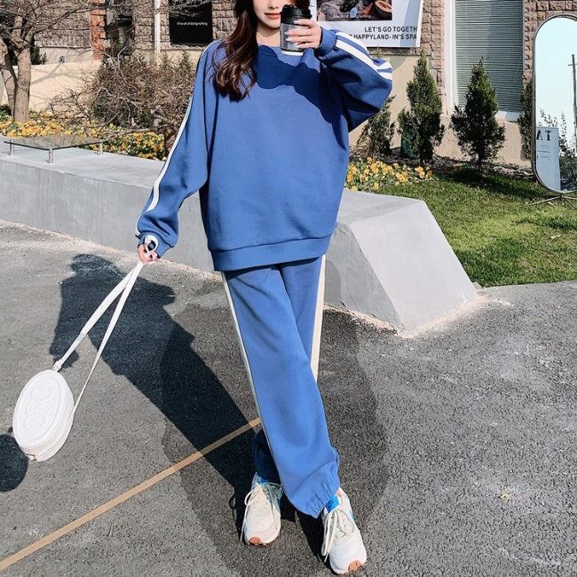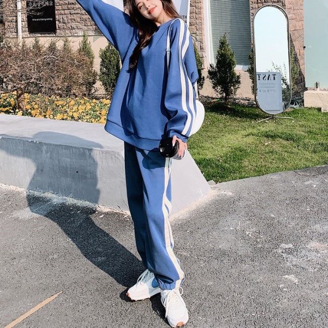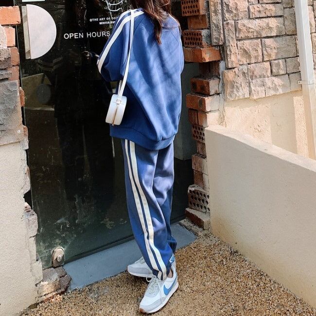 ライン スウェット ジャージ セットアップ レディース 韓国 ファッション サイドライン トレーナー ジョガーパンツ 秋冬