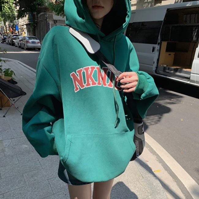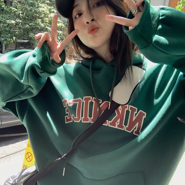 ビッグシルエット ロゴ パーカー レディース 韓国 スウェット 秋冬 レディース ロゴ プルオーバー フード トップス オーバーサイズ