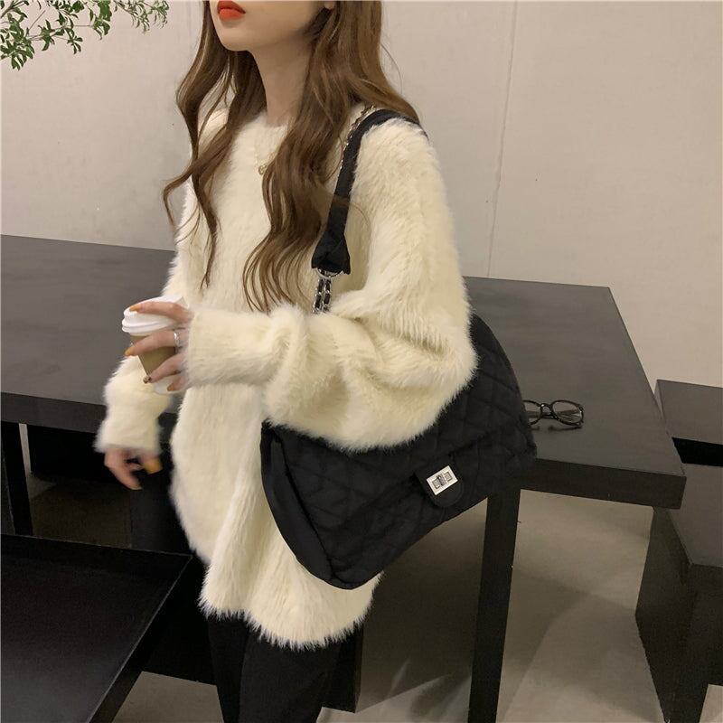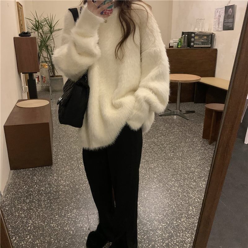 シャギーニット レディース 韓国 ファッション 毛足長いニット 白トップス 冬 トップス おしゃれ 大人カジュアル オーバーサイズ