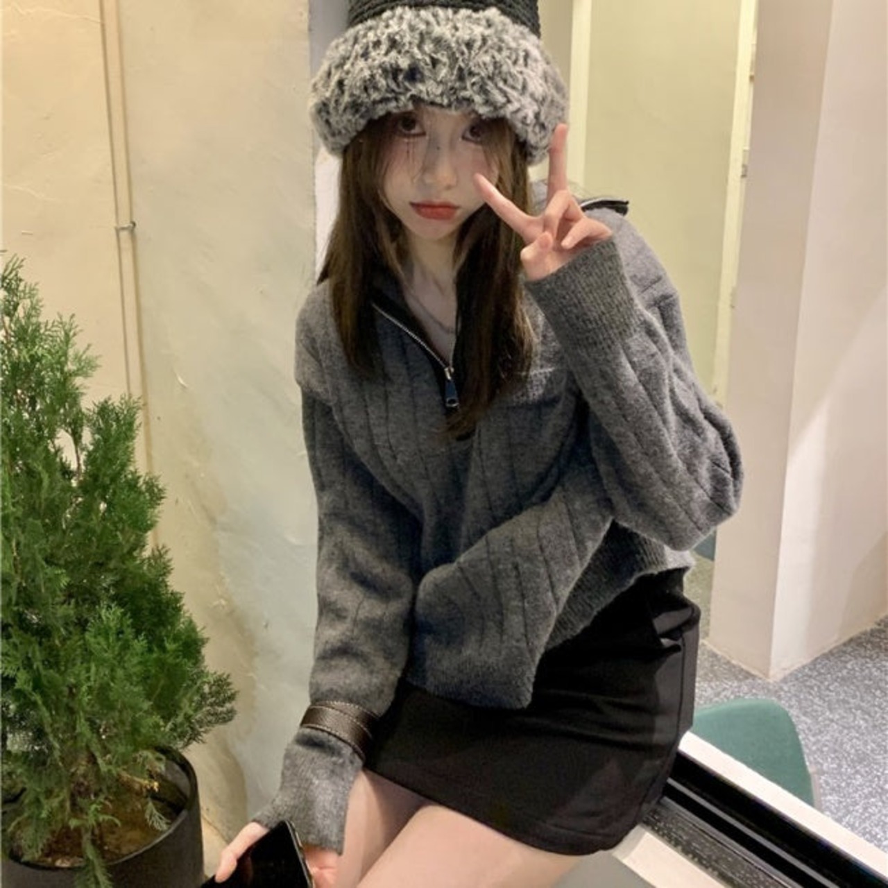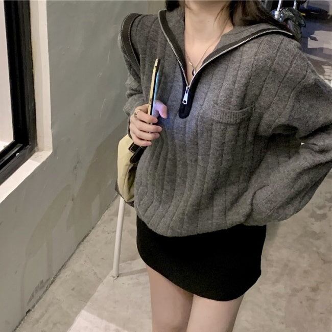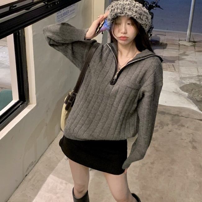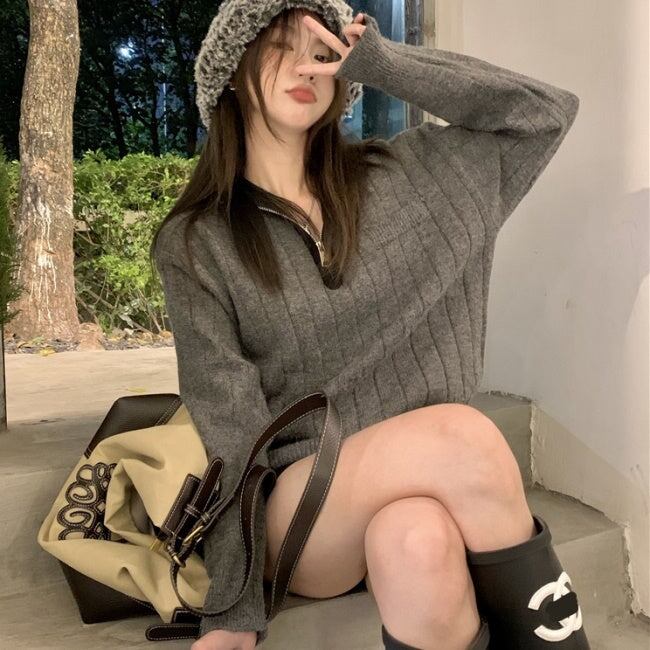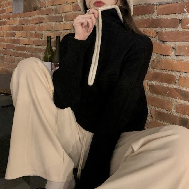 ハーフジップ ニット レディース 韓国 ファッション ハイネック オーバーサイズ ニット 冬 トップス