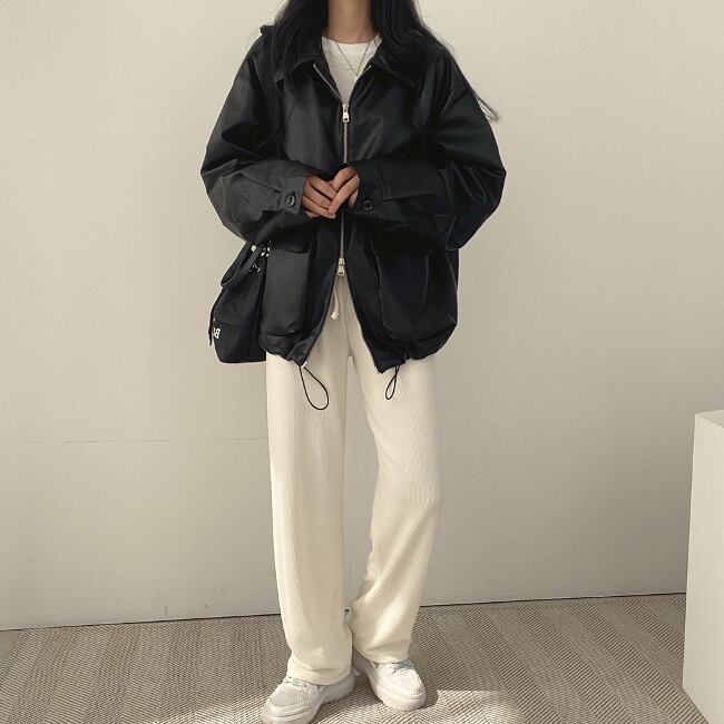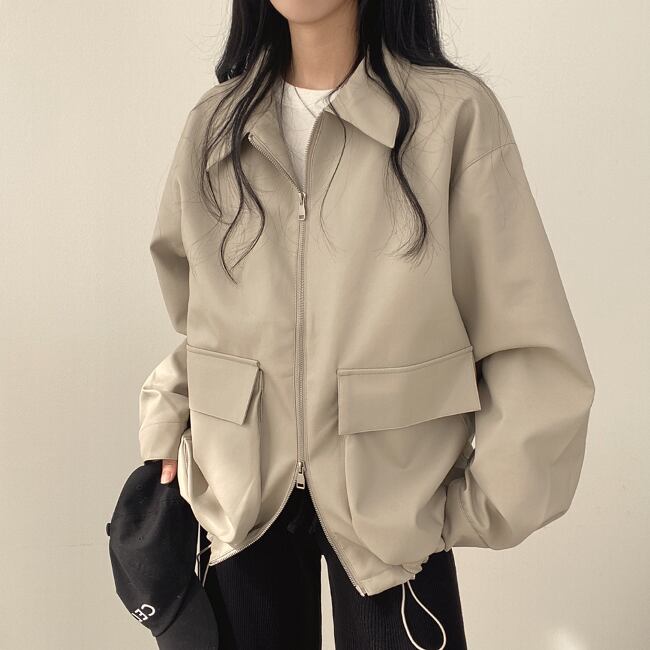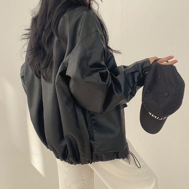 オーバーサイズ エコレザー ブルゾン レディース 韓国 ファッション 秋冬春 メンズライク エコレザージャケット