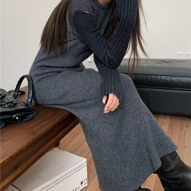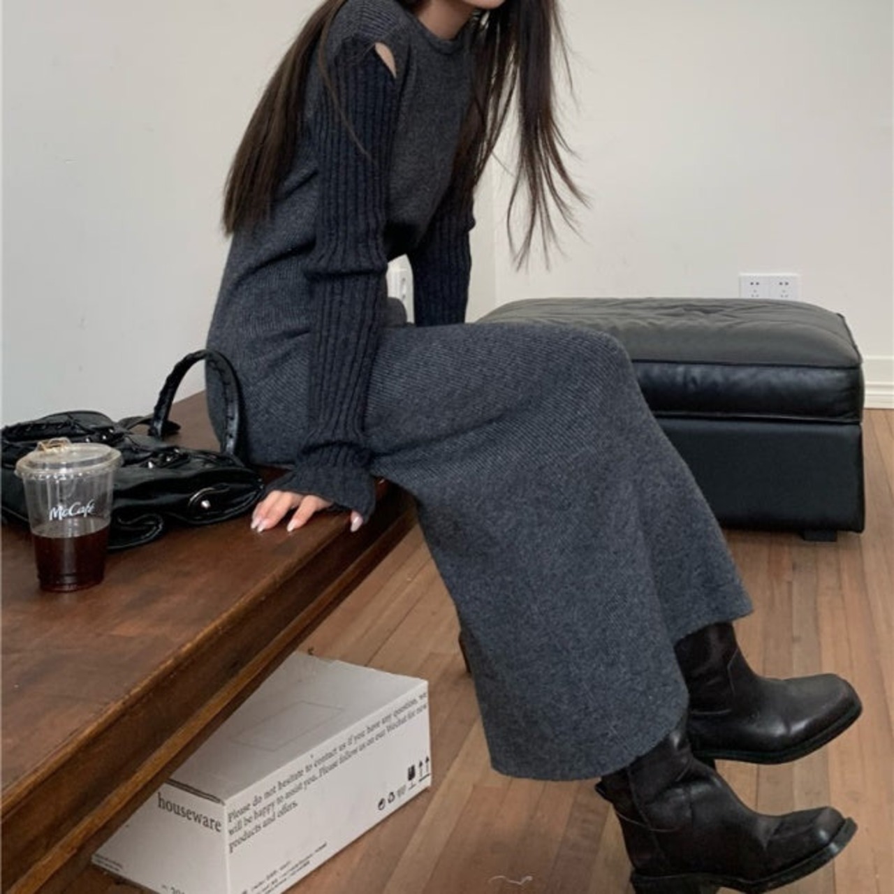 ニットワンピース ロング レディース 韓国 ファッション 袖コンシャス 長袖ニットワンピース ストレッチワンピース おしゃれ