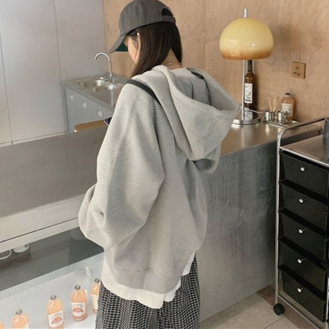スウェット パーカー レディース 韓国 ファッション ジップアップ グレーパーカー 裏起毛 厚手 あたたか 冬パーカー ゆったり オーバーサイズ ビッグ