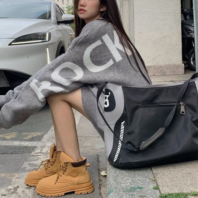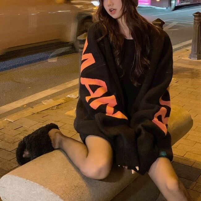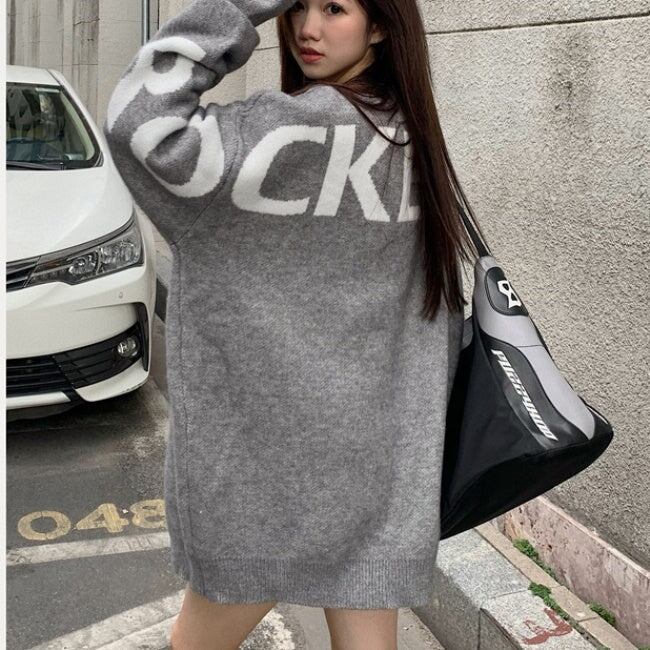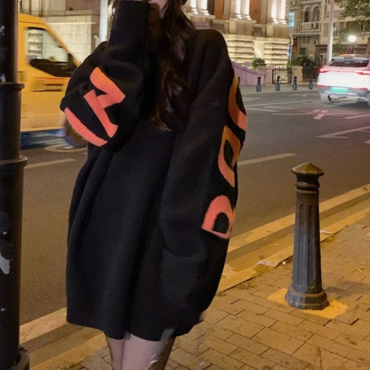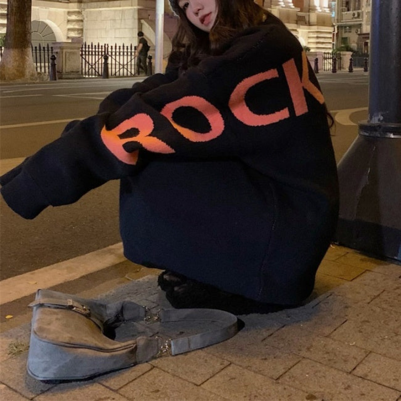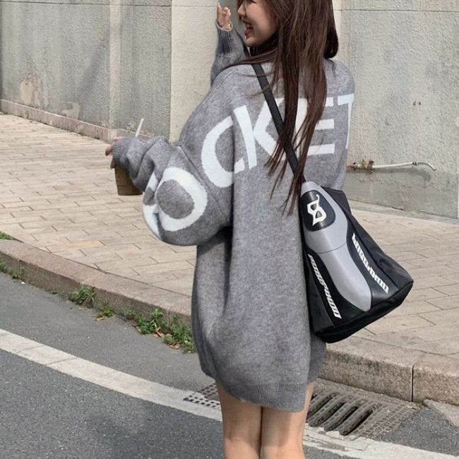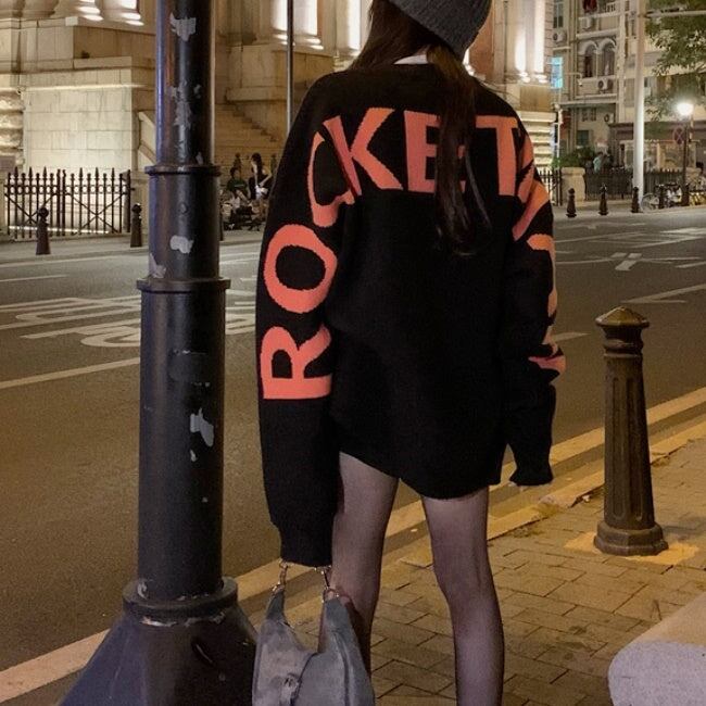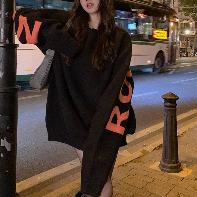 バックロゴ ビッグニット レディース 韓国 ファッション ストリート 冬 ロゴ ニット トップス