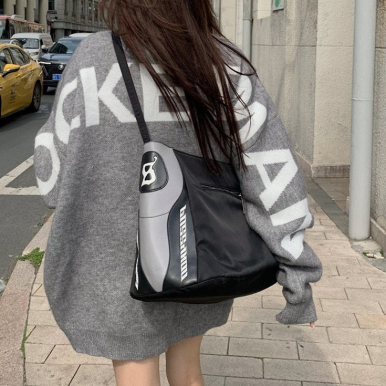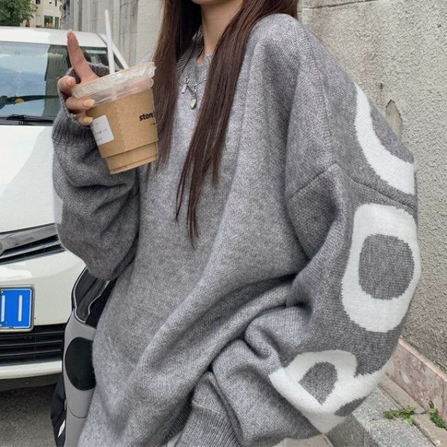 バックロゴ ビッグニット オーバーサイズ レディース 韓国 ファッション ボーイフレンド バイカラー グレー 黒 ゆったり アンニュイ ストリート