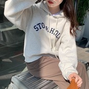 パーカー スウェット レディース 韓国 ファッション ロゴ フードパーカー 裏起毛 厚手 秋冬 トップス プルオーバー パーカースウェット ロゴパーカ