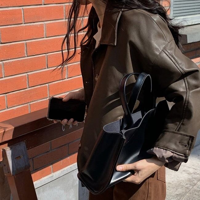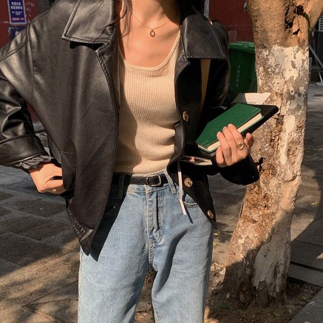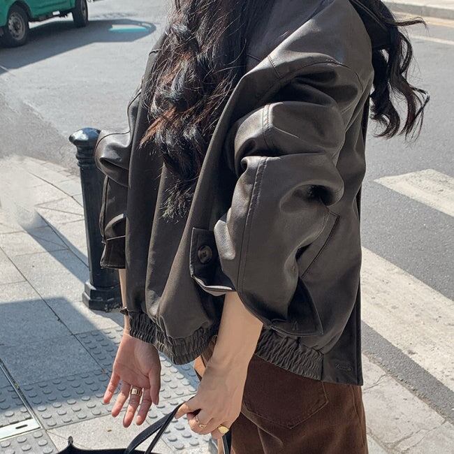 エコレザー ジャケット ブルゾン レディース 韓国 ファッション 秋冬 メンズライク シンプル 防寒 フェイクレザー オーバーサイズ ジャケット