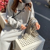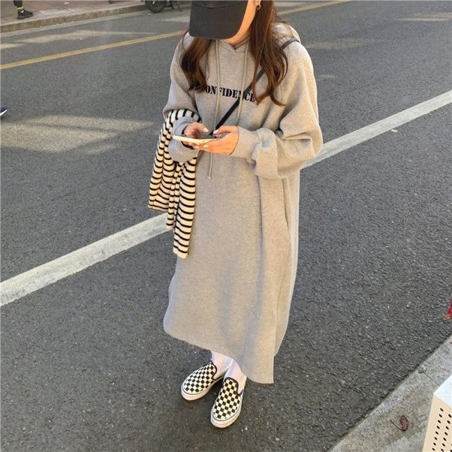 パーカーワンピース ロング スウェット レディース 韓国 ファッション ロゴ パーカー ワンピース
