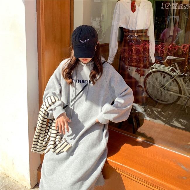 パーカーワンピース スウェット レディース 韓国 ファッション オーバーサイズ ロゴ パーカー ロングワンピース
