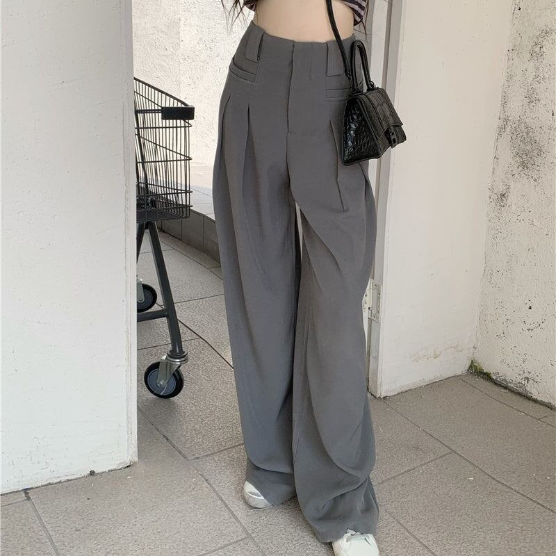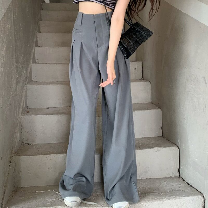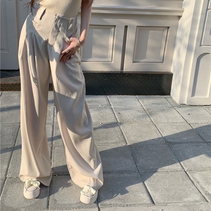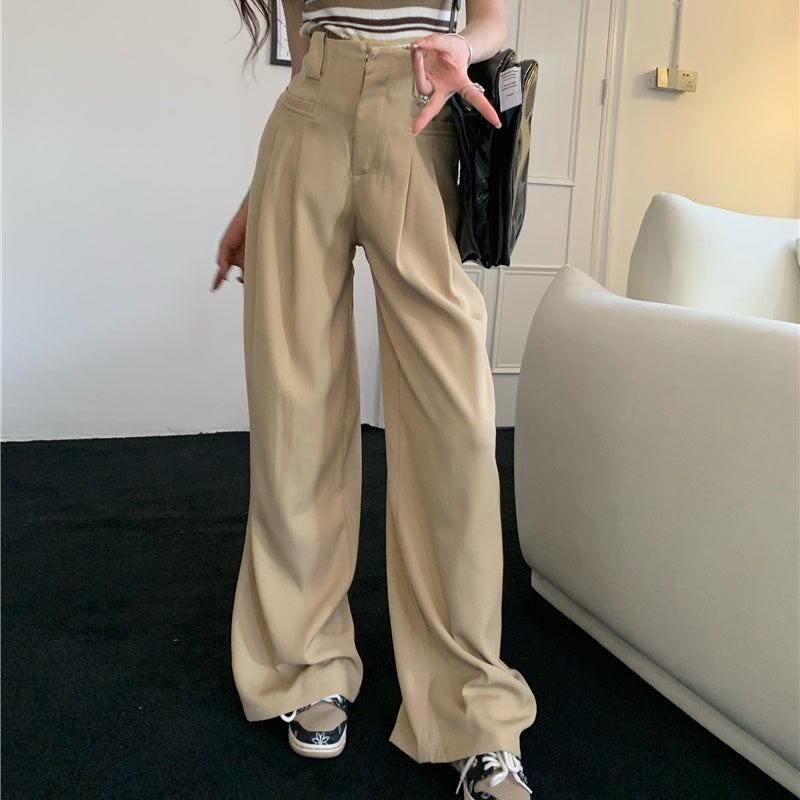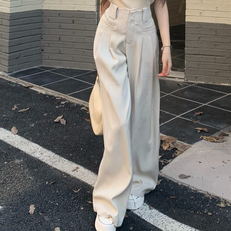 ワイドパンツ ハイウエスト レディース 韓国 ファッション ロングパンツ 春ボトム ツータック 無地 春パンツ