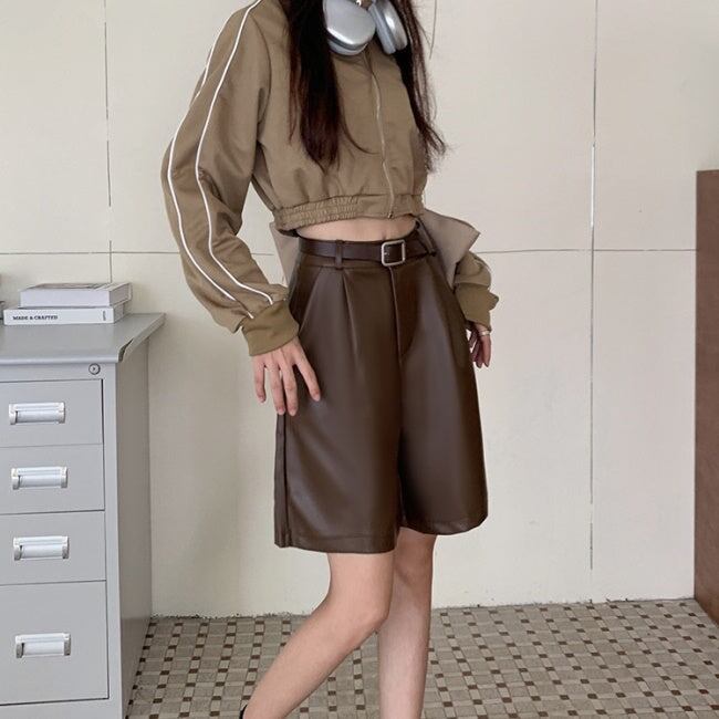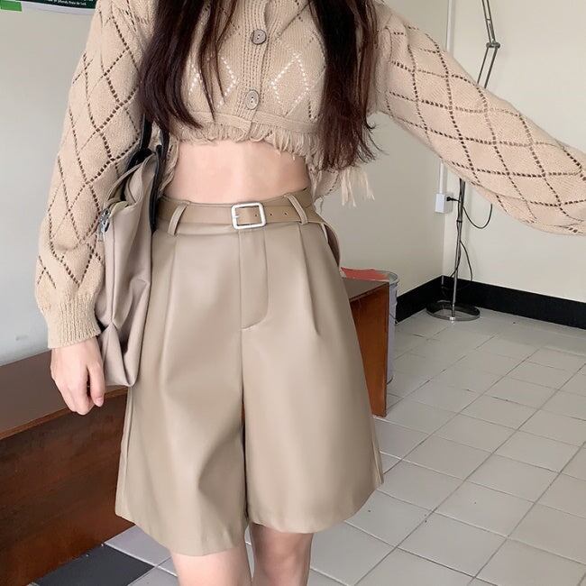 エコレザー ハーフパンツ レディース 韓国 ファッション 春 ストレッチ ハーフパンツ 合皮 レザーパンツ おしゃれ 大人カジュアル ベージュ 黒