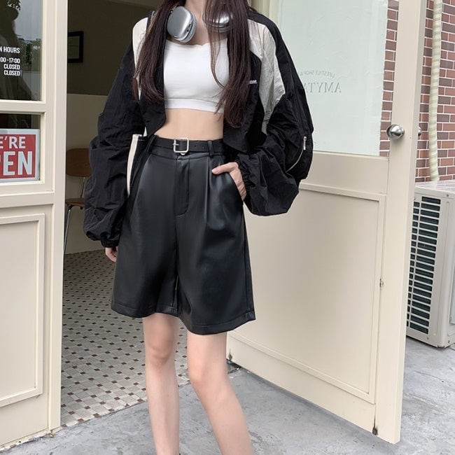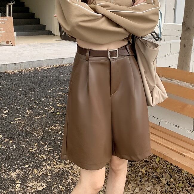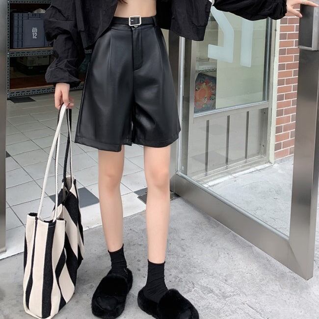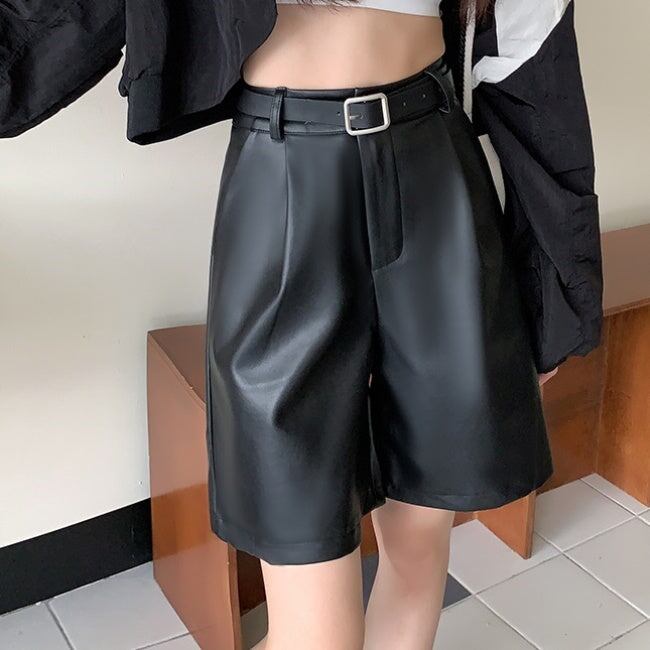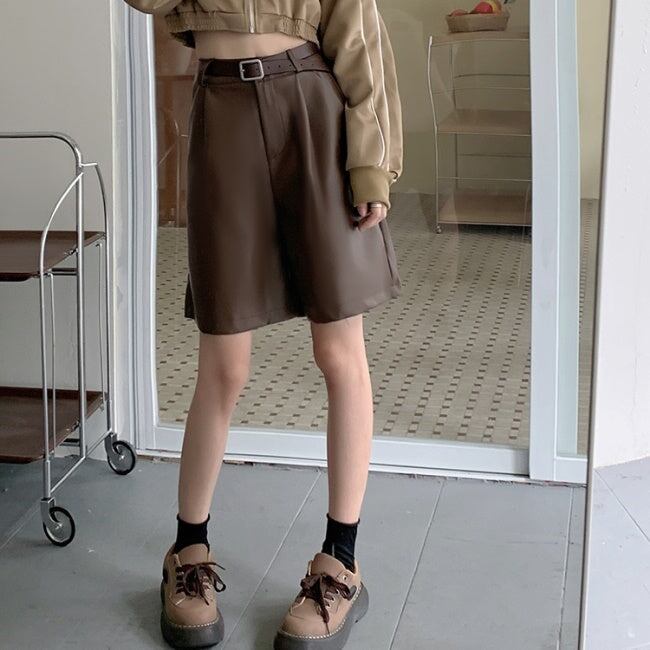 トレンドのフェイクレザーボトム♪ハーフパンツ