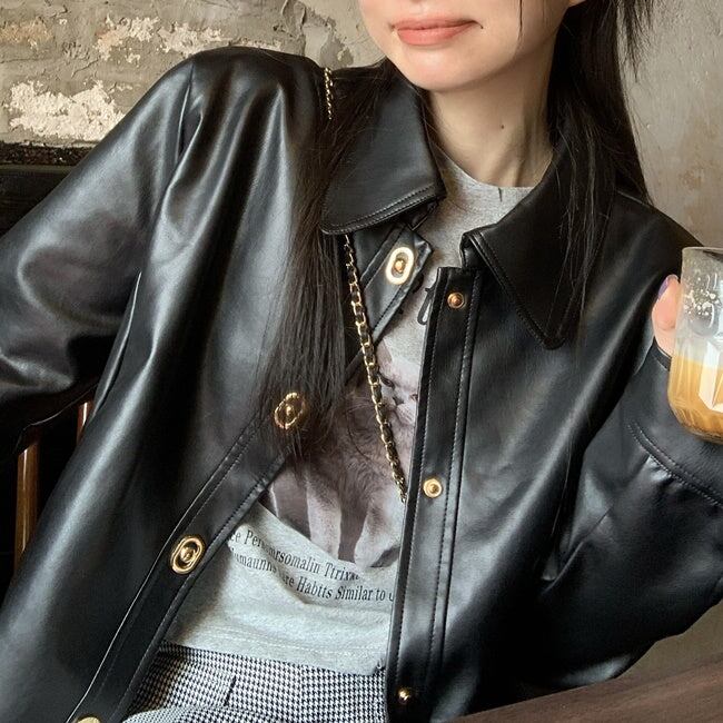 エコレザー ジャケット レディース 韓国 ファッション フェイクレザー ブルゾン JKT