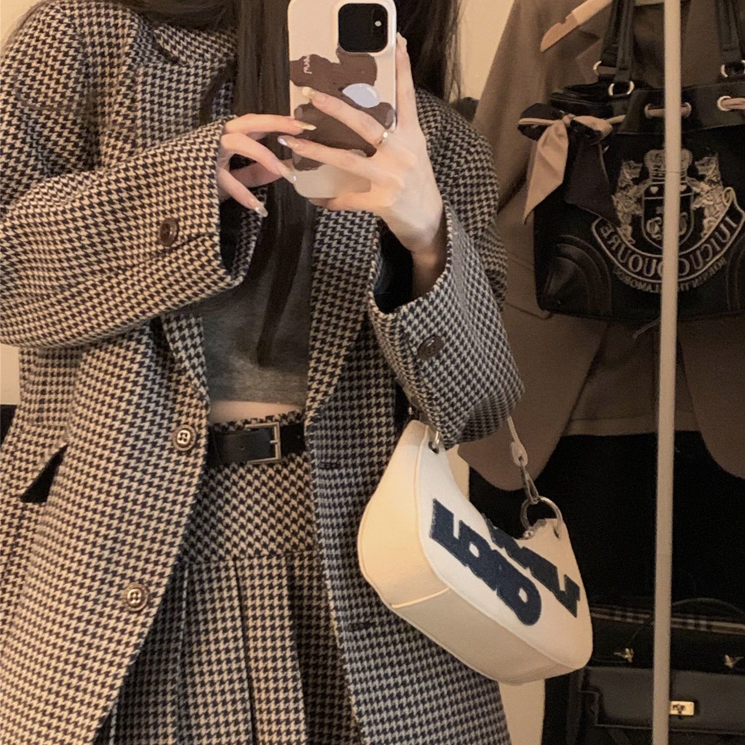 チェック柄 スーツ レディース 韓国 ファッション 制服コーデ プリーツスカート テーラードジャケット ブレザー 2点セット スーツ お呼ばれ プレッピーコーデ