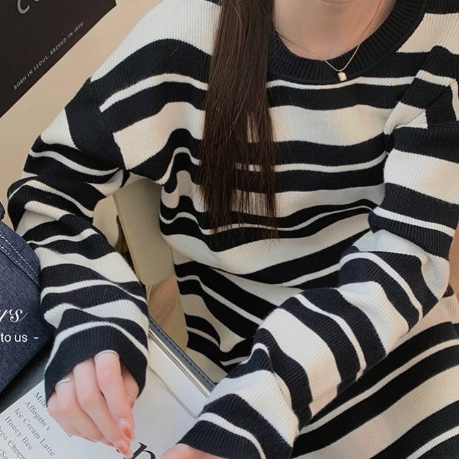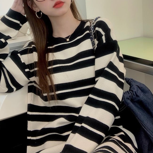 ボーダー ワンピース レディース 韓国 ファッション リブカットソー 柄ワンピース 長袖 春秋 オーバーサイズ ゆったりワンピ