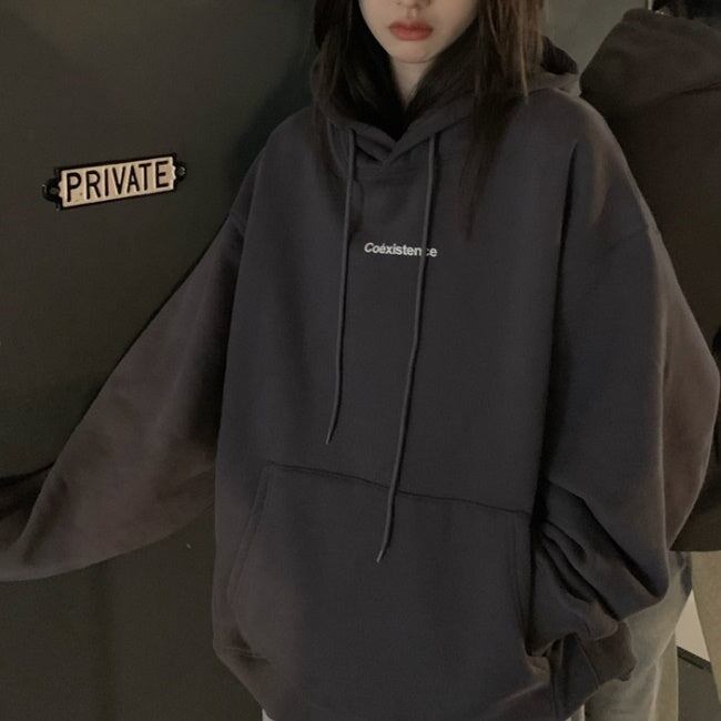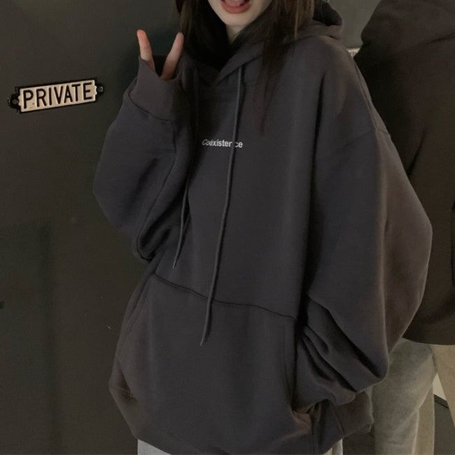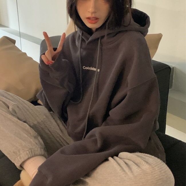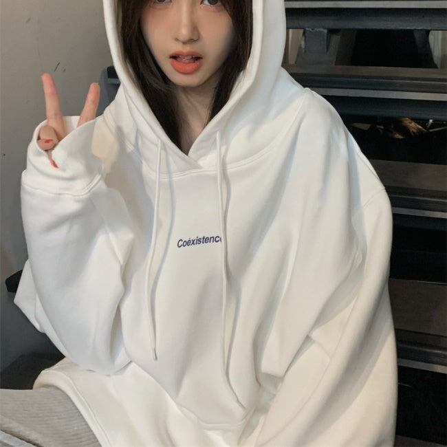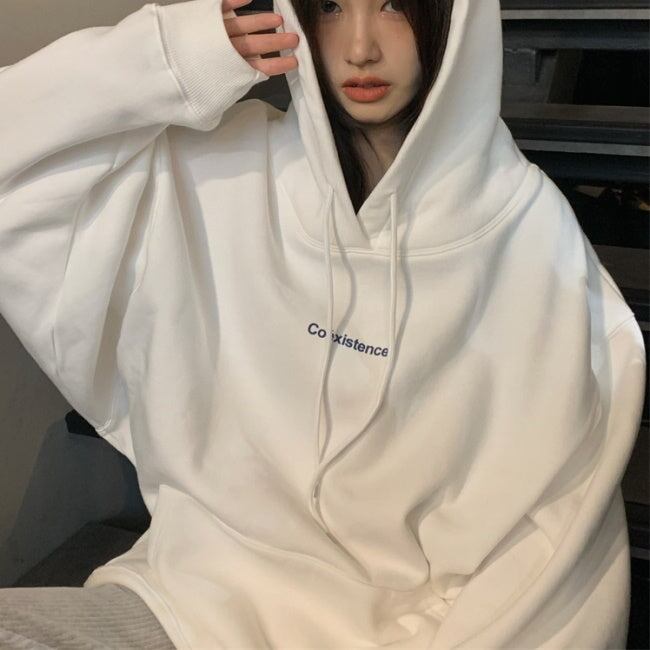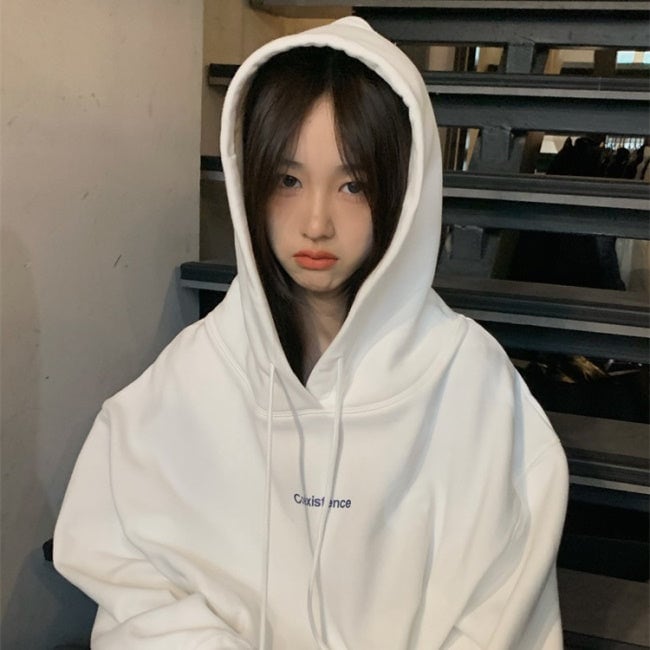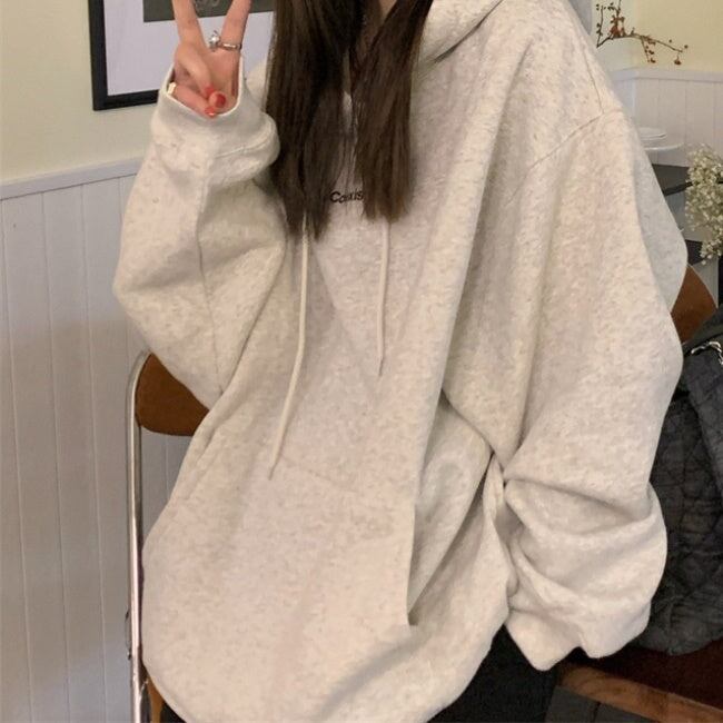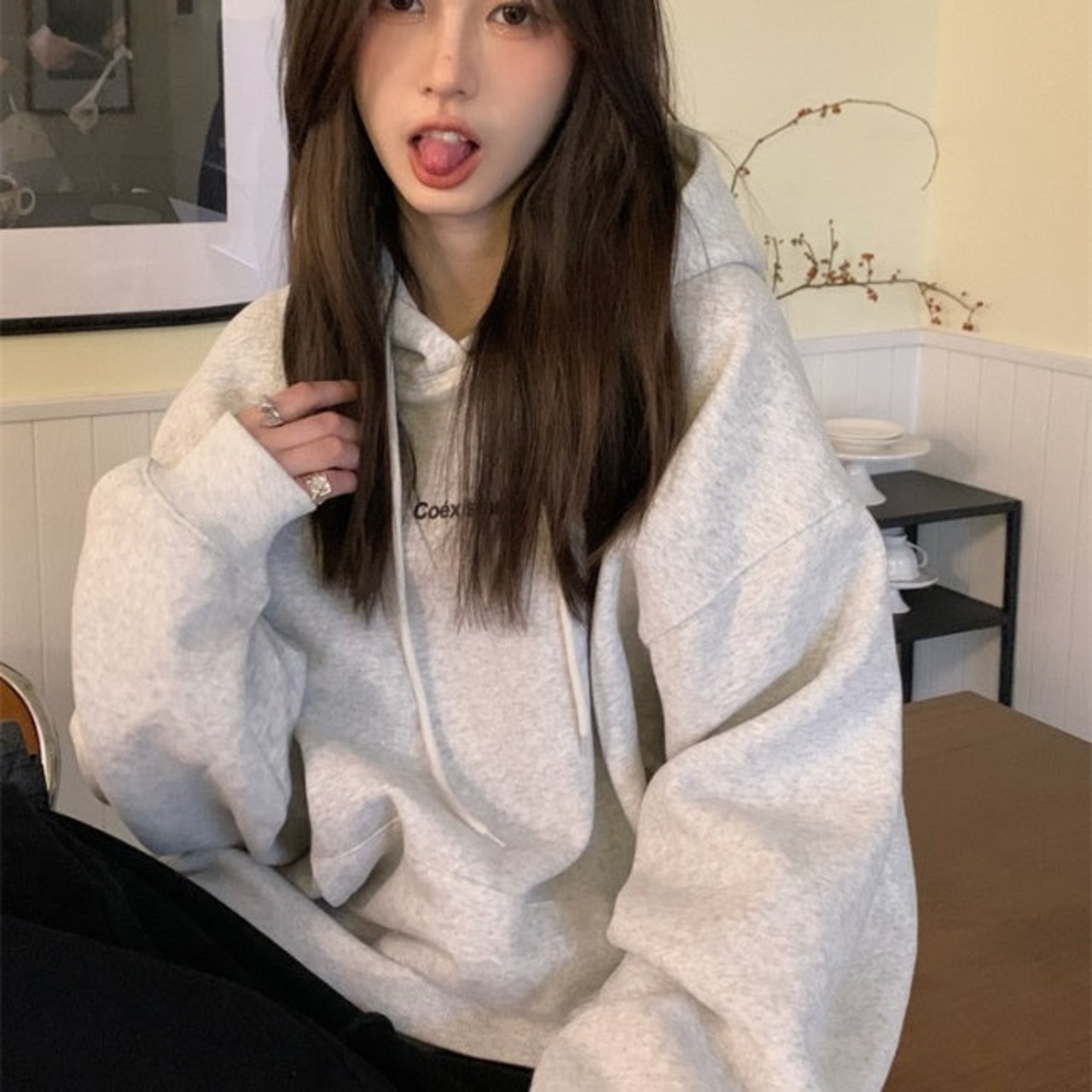 ロゴ パーカー レディース 韓国 ファッション ビッグシルエット スウェット フーディ ホワイト/ヘザーグレー
