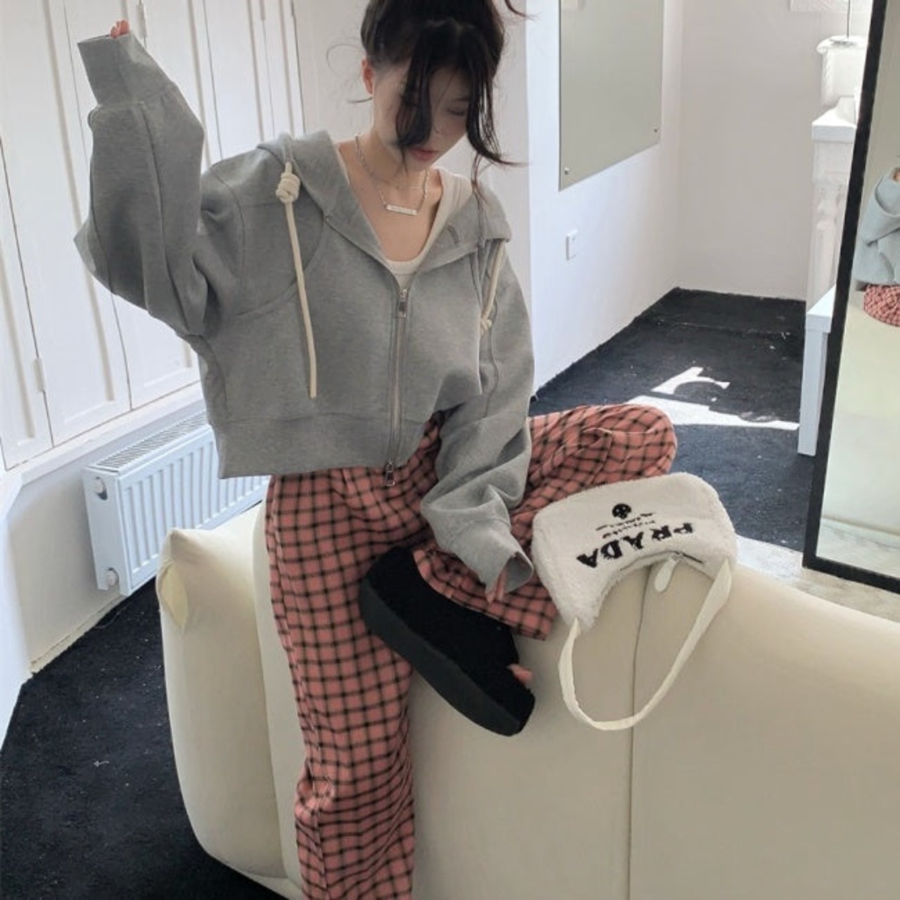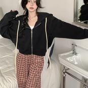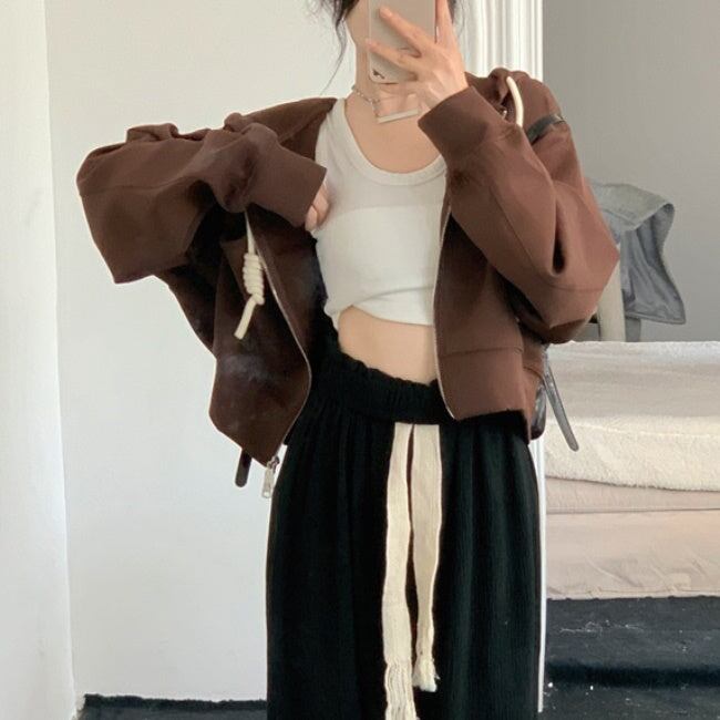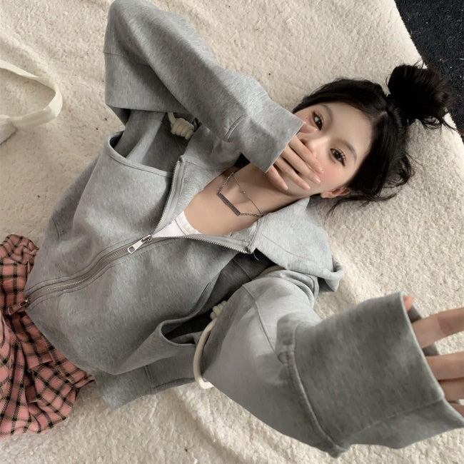 クロップド ジップ パーカー レディース 韓国 ファッション スウェット ショート丈 ワイド パーカー