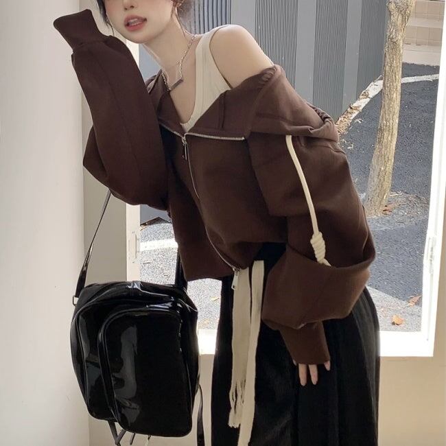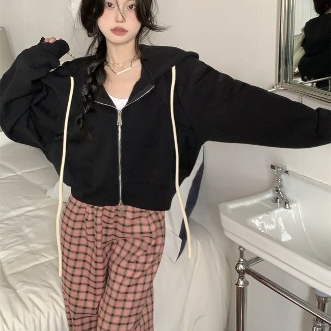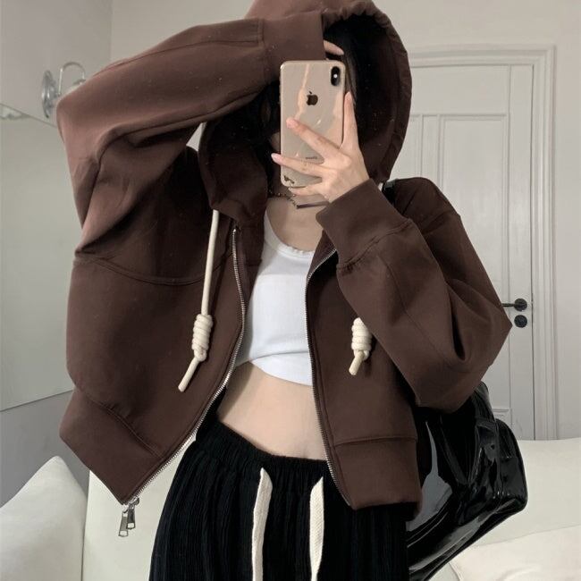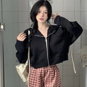 クロップドパーカー ショートスウェット レディース 韓国 ファッション ジップパーカー 無地 ワイドサイズ かわいい 春秋 レイヤード スウェット
