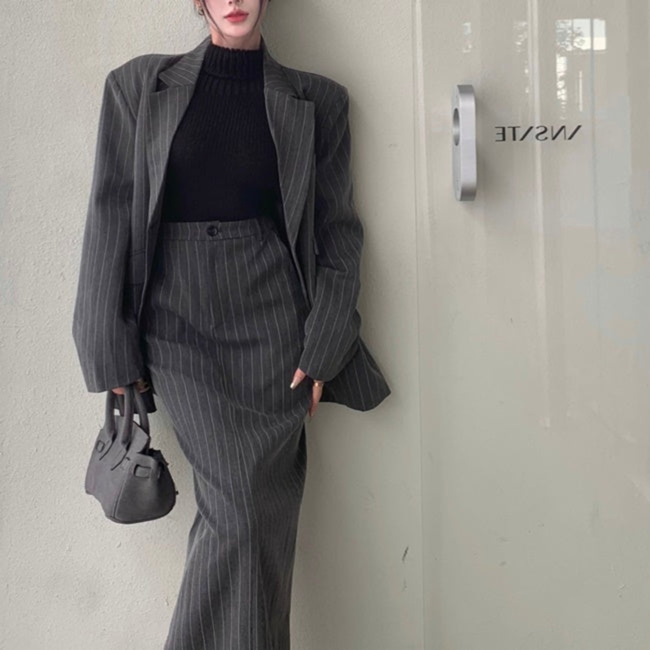 セットアップ レディース 韓国 ファッション スカート テーラードジャケット ストライプ 柄 ツーピース ワンボタンジャケット