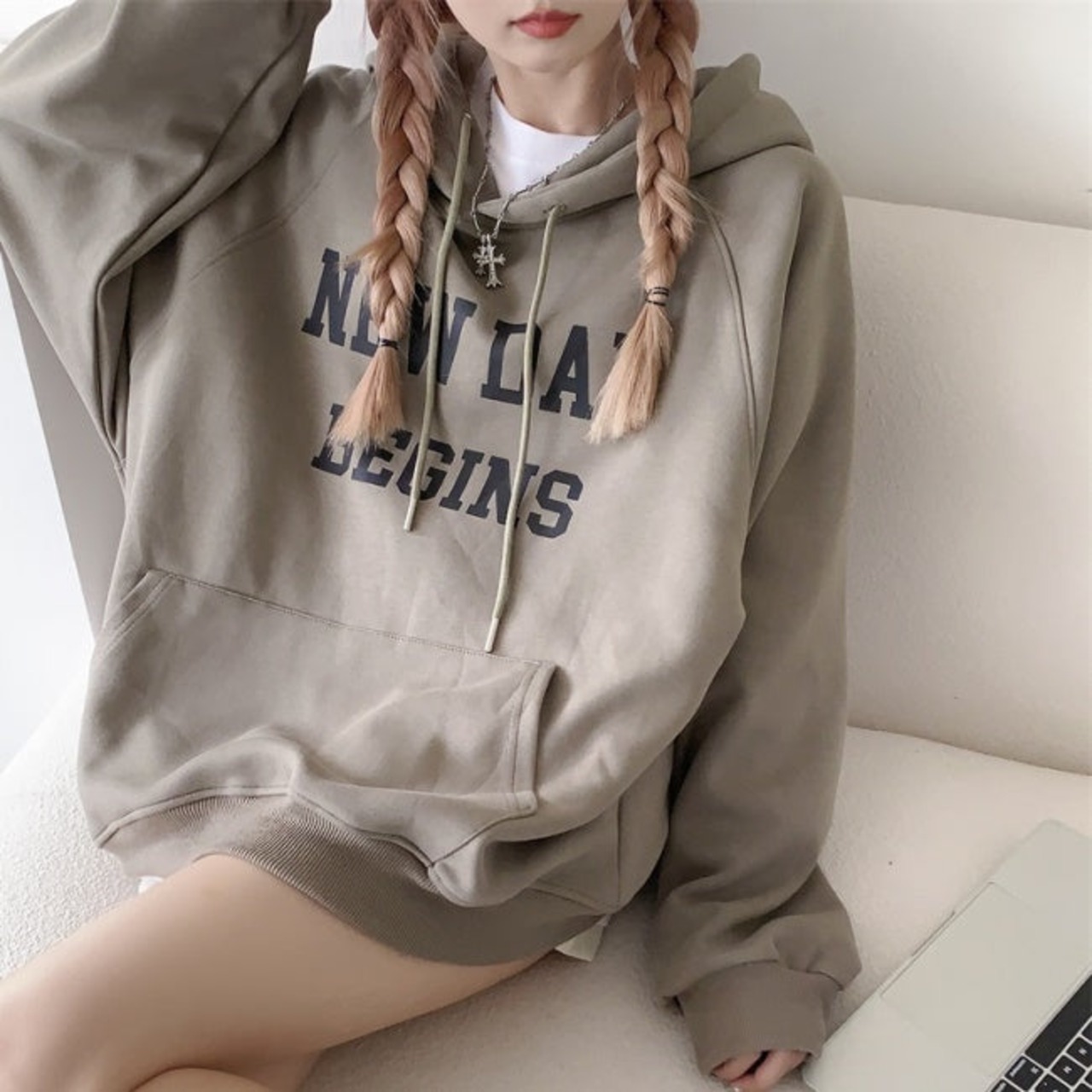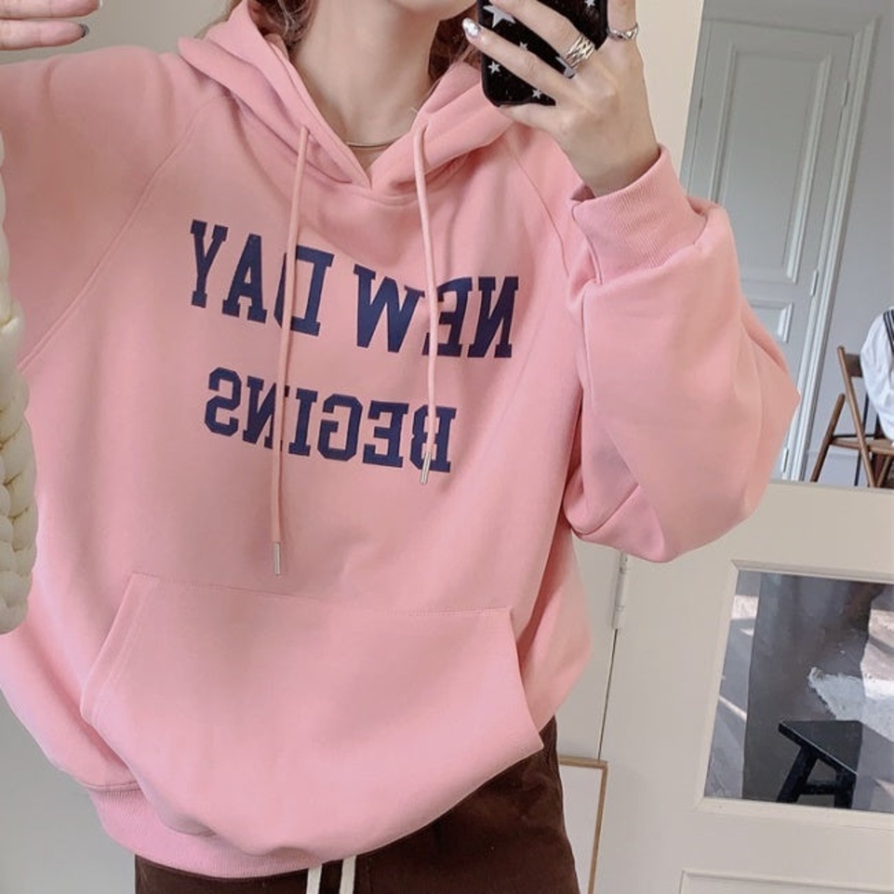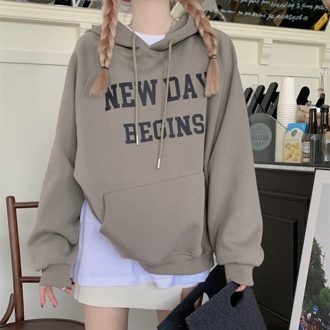 ロゴ パーカー レディース 韓国 ファッション プルオーバー パーカー オーバーサイズ ポケット
