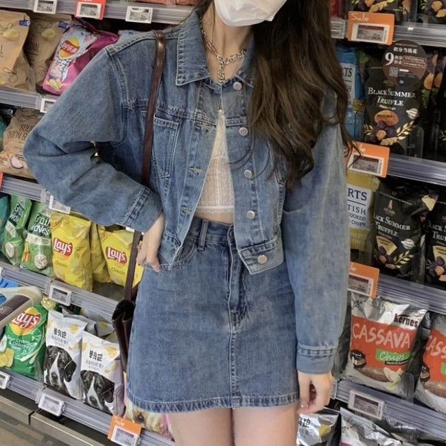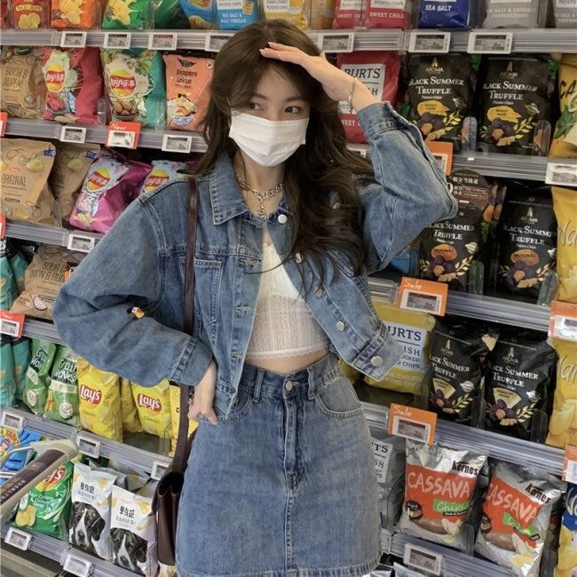 デニム セットアップ レディース 韓国 ファッション デニムジャケット ミニスカート 台形ミニ カジュアル 2点セット ツーピースデニム 春コーデ
