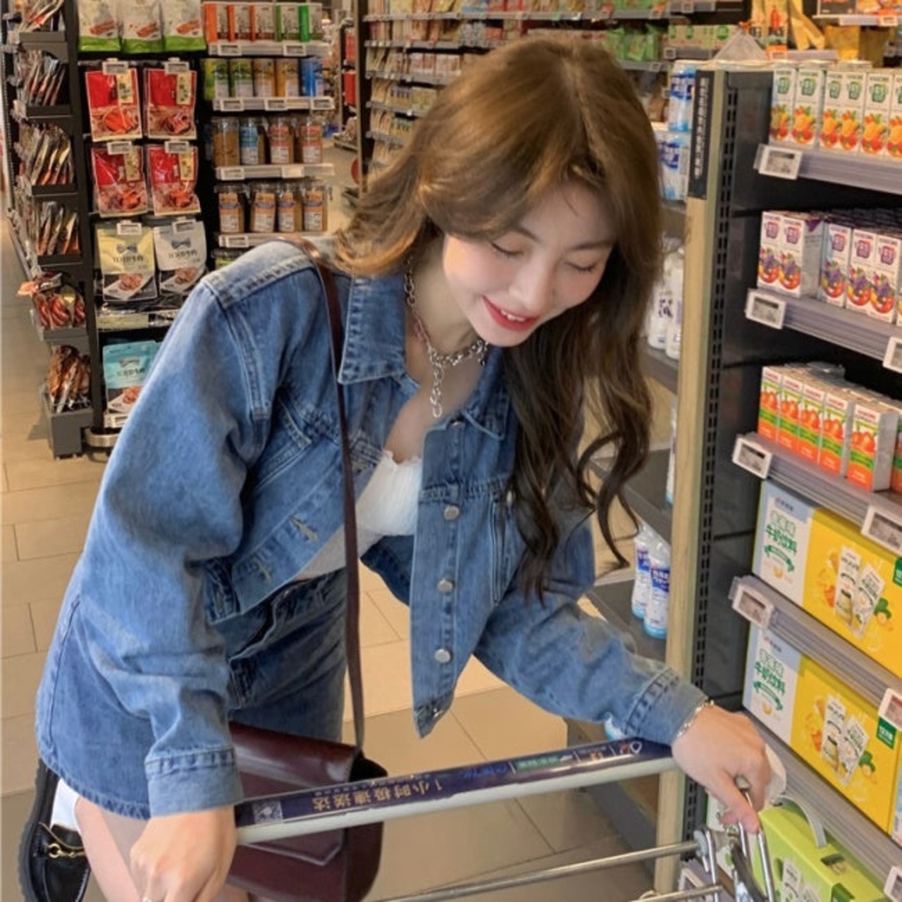 デニム セットアップ レディース 韓国 デニムジャケット ミニスカート 2ピース デニムセット 春