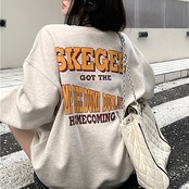 トレーナー スウェット レディース 韓国 ファッション 長袖 バックプリント アメコミプリント 漫画プリント オーバーサイズ 春トップス カジュアル おしゃれ ベージュ