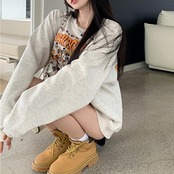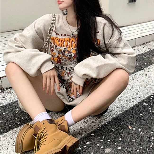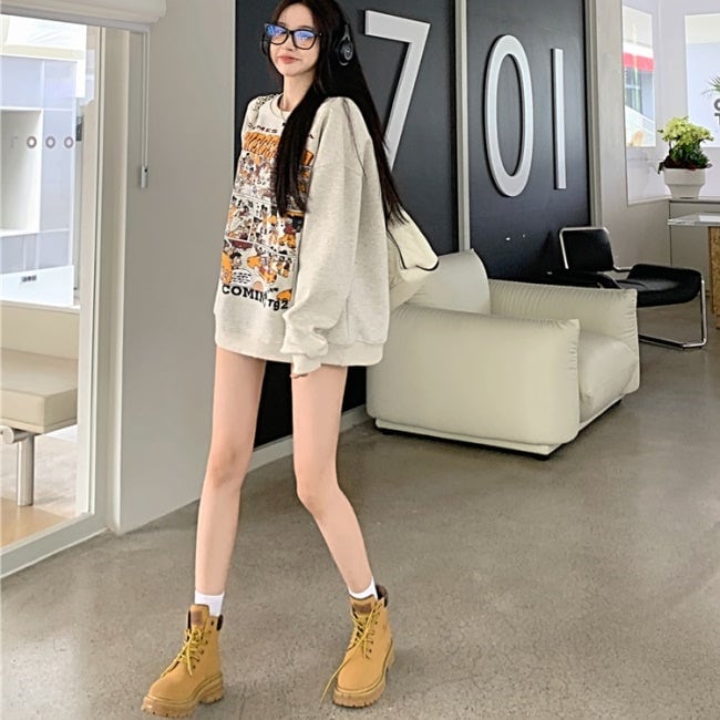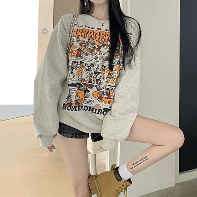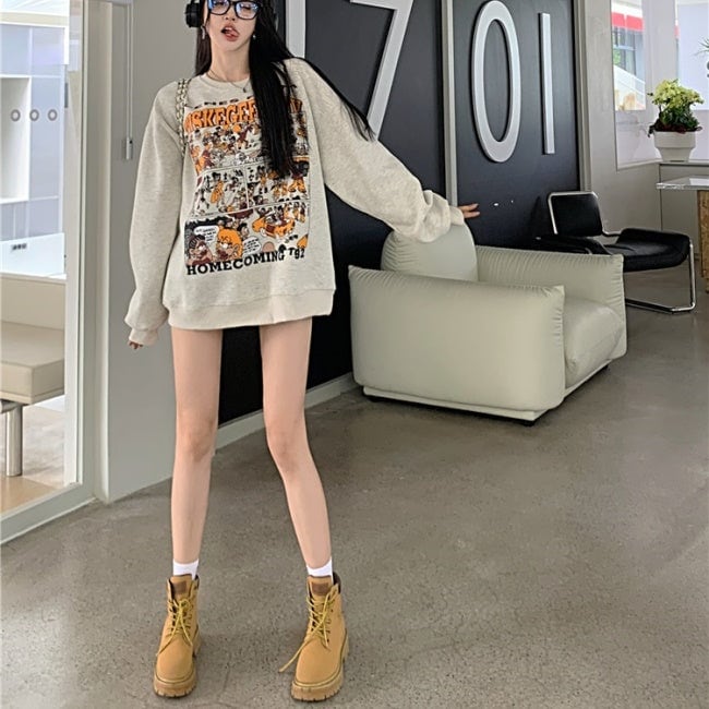 プリント トレーナー レディース 韓国 ファッション スウェット オーバーサイズ アメコミ プリント 漫画プリント 春トップス