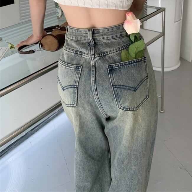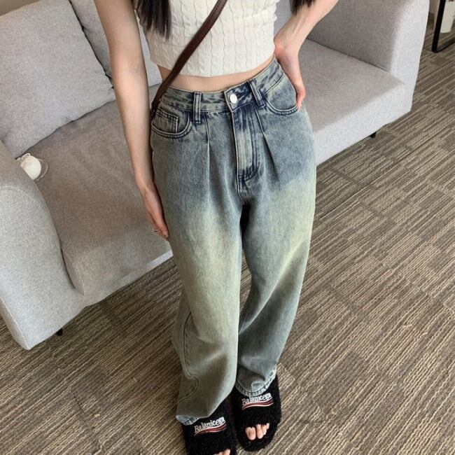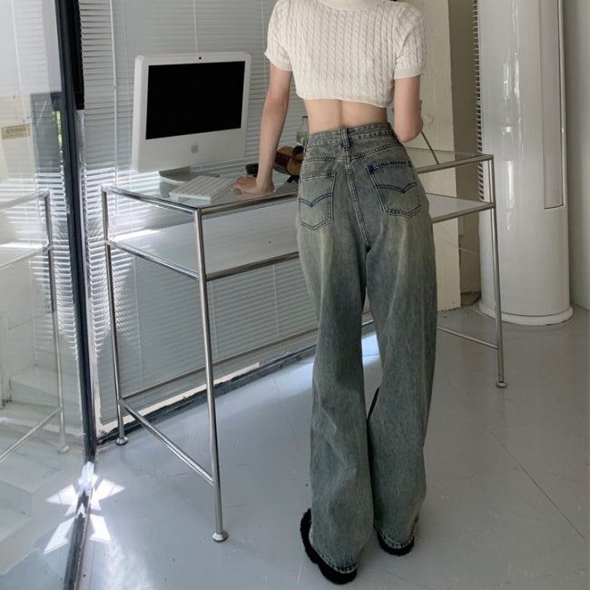モップパンツ ワイドパンツ レディース 韓国 ファッション デニムパンツ 太めのパンツ ジーンズ