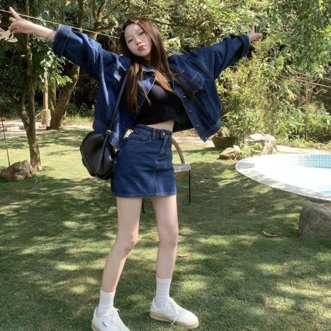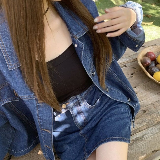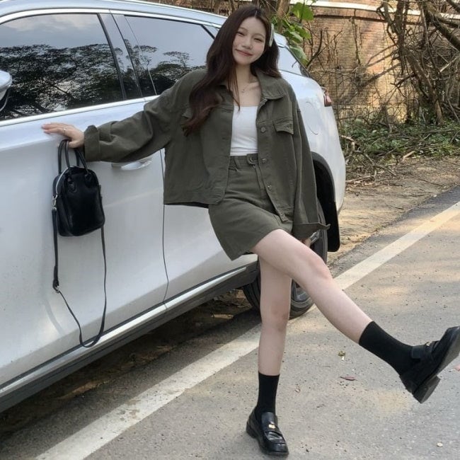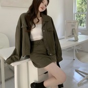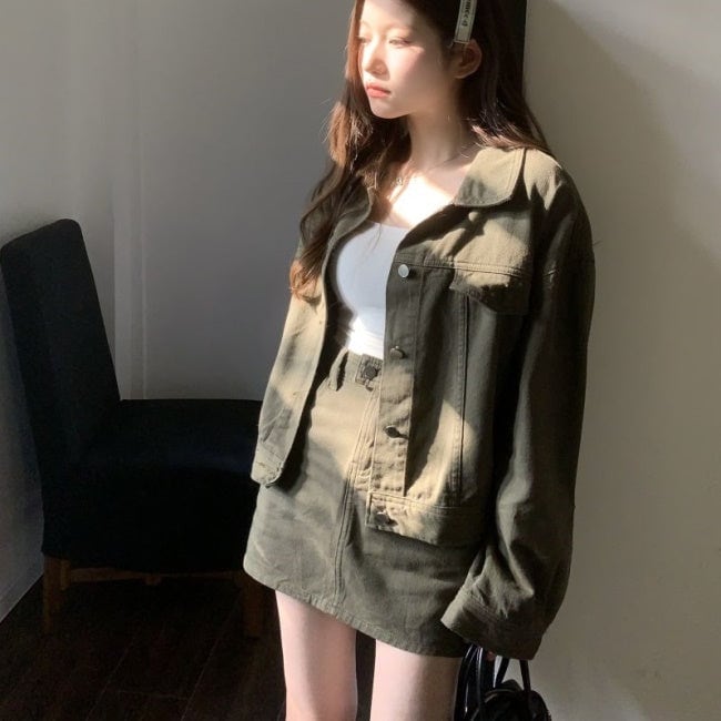セットアップ デニム レディース 韓国 ファッション デニムジャケット デニムスカート グリーンデニム カラーデニム タイトスカート